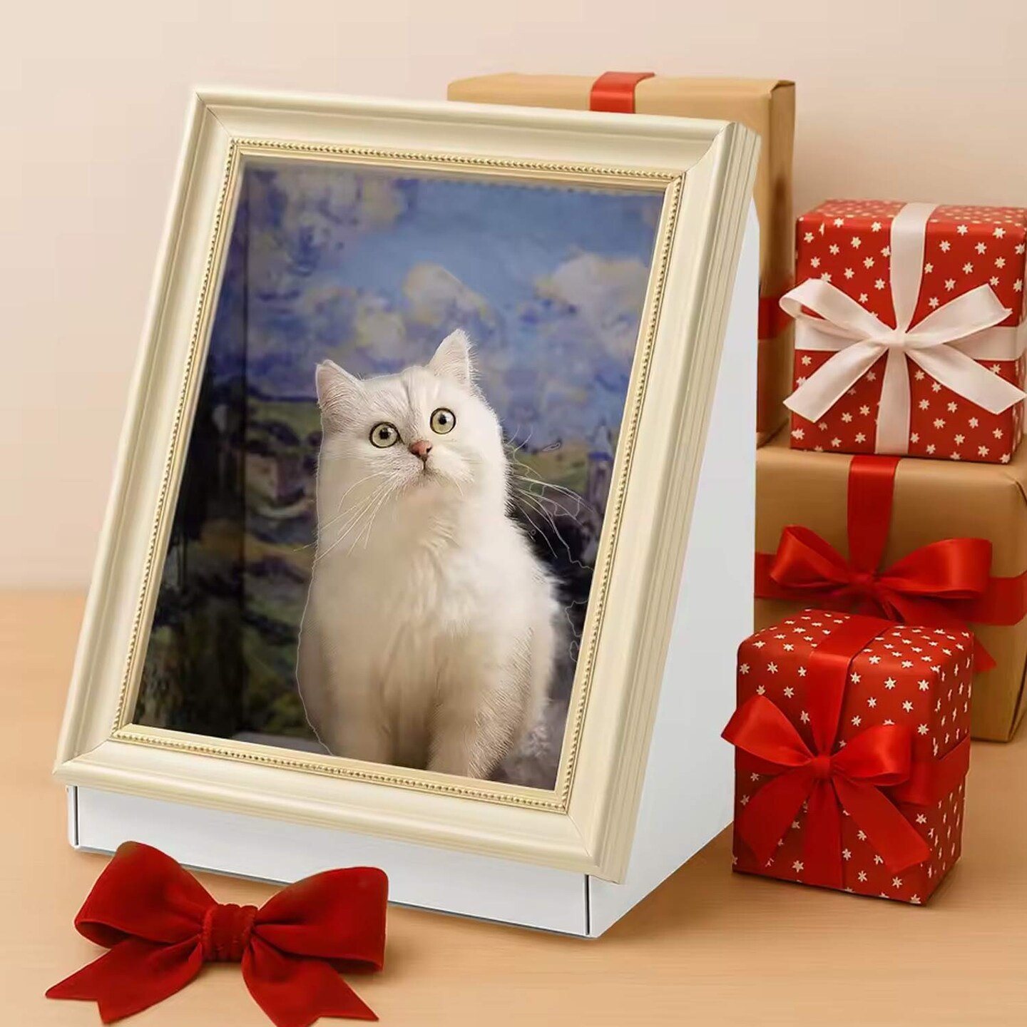 Seine River Oil Painting Cat Scratch Board Luxury Cat Tree Paper Toy 16.92"x12.60"x20.86"