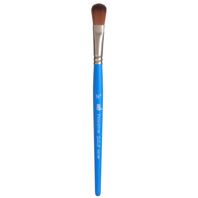 Select Artiste Oval Mop Brush, Synthetic Bristles, Short Handle Mixed Media Paintbrush, Jewel Blue, Size 1/2 inch, 1 Count