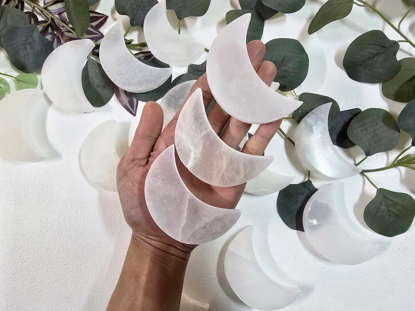 Selenite Crescent Moon Natural Polished Selenite for Cleansing & Charging Crystals
