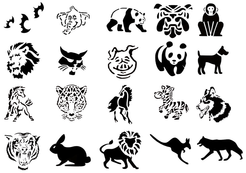 Self Adhesive Airbrush Tattoo Stencils Set 50 Book of 20 Animals Design Reusable