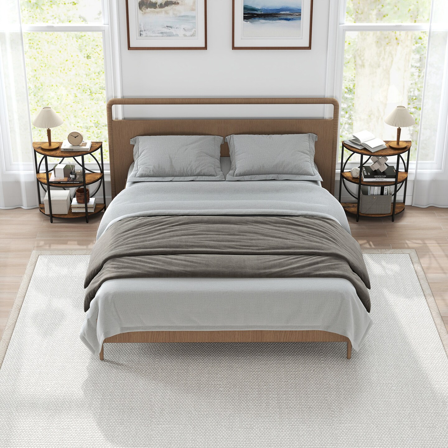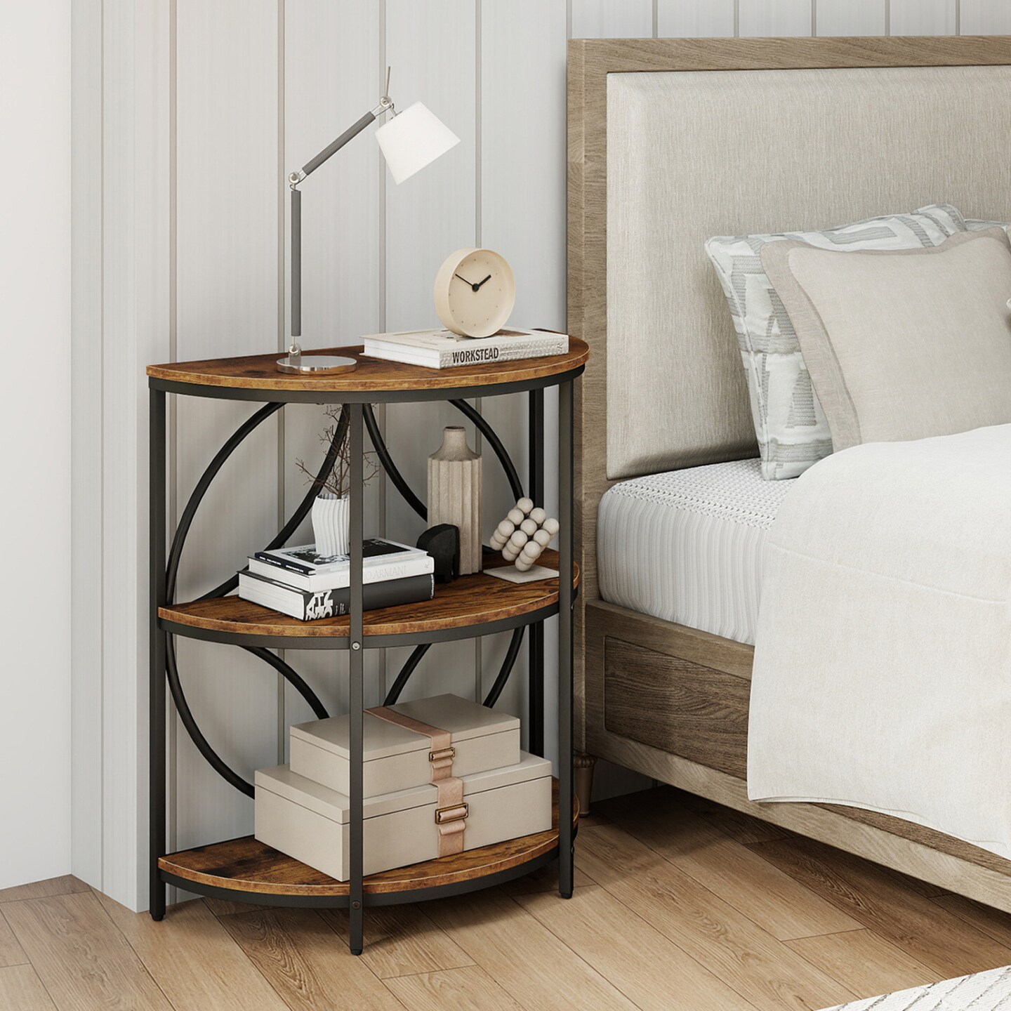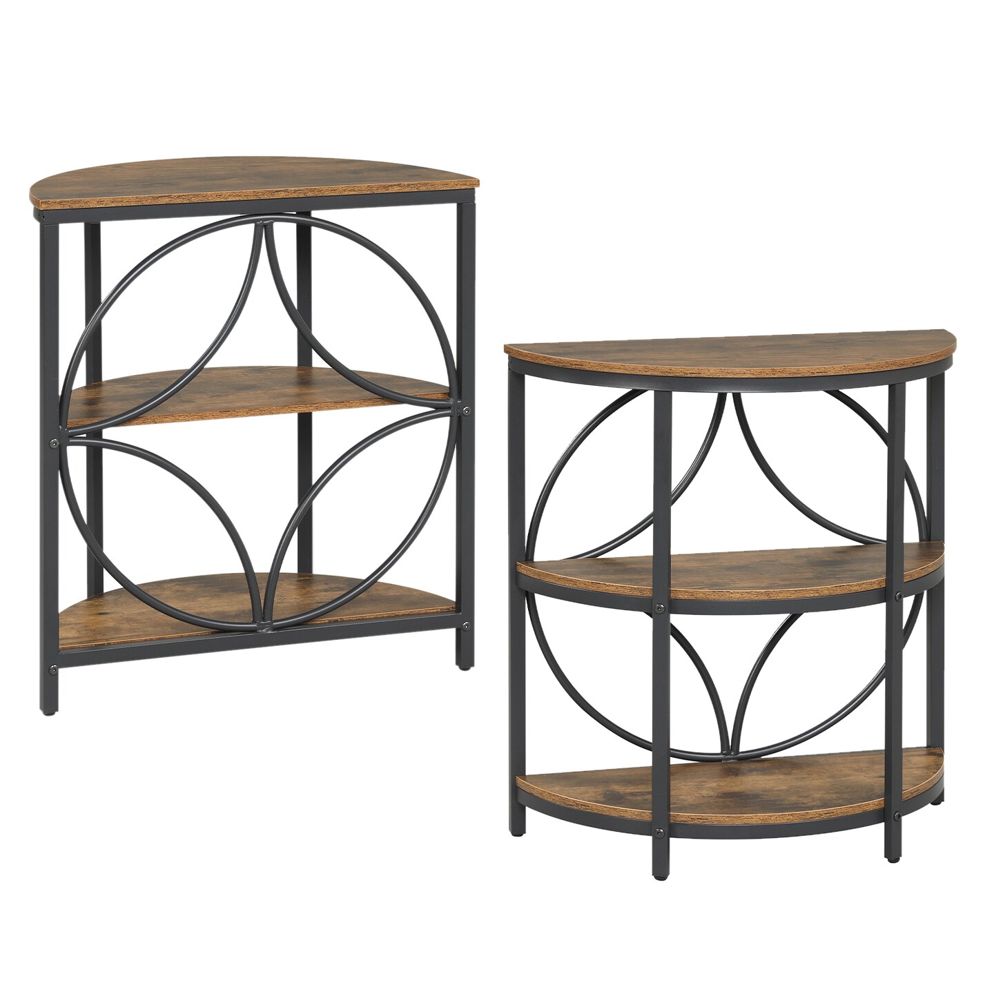 Semi-Circular End Table 3-Tier Storage Metal MDF