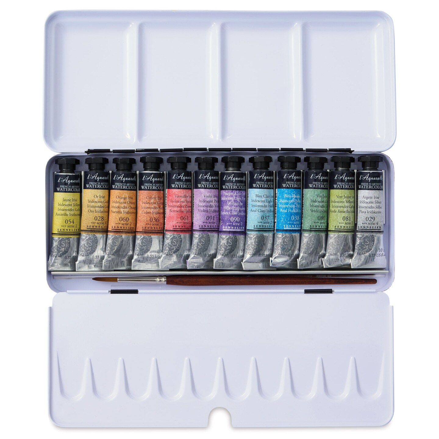 Sennelier French Artists' Watercolor Set - Set of 12, Metal Case, Iridescent, 10 ml