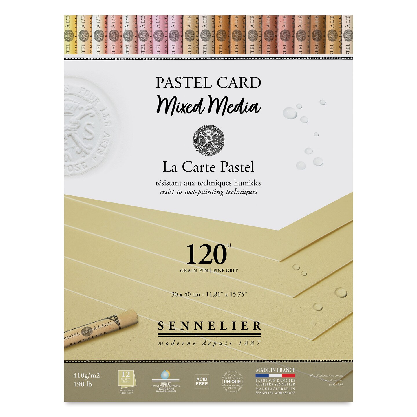 Sennelier La Carte Pastel Card Mixed Media Pad - Naples Yellow, 12" x 16", 190 lb, 12 Sheets
