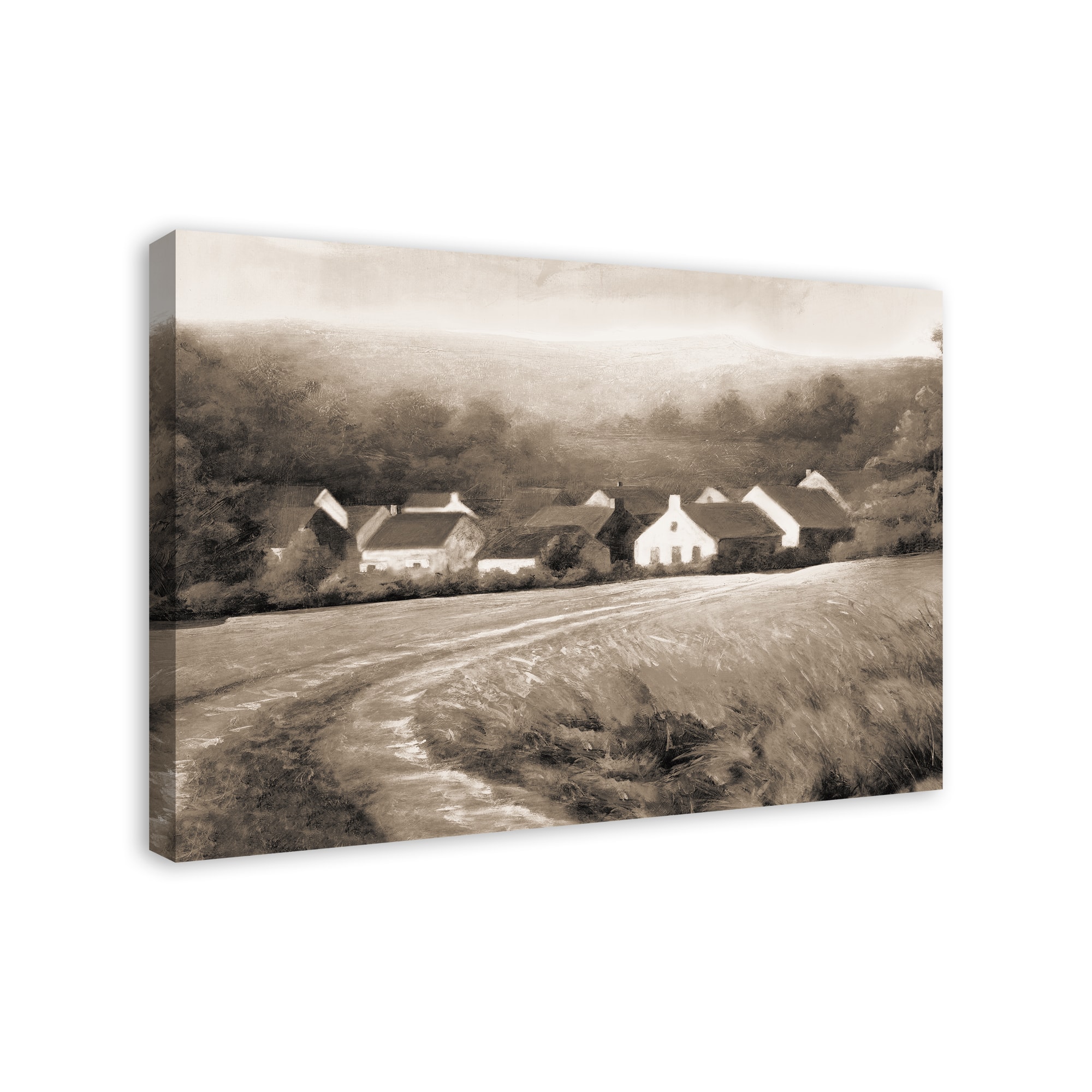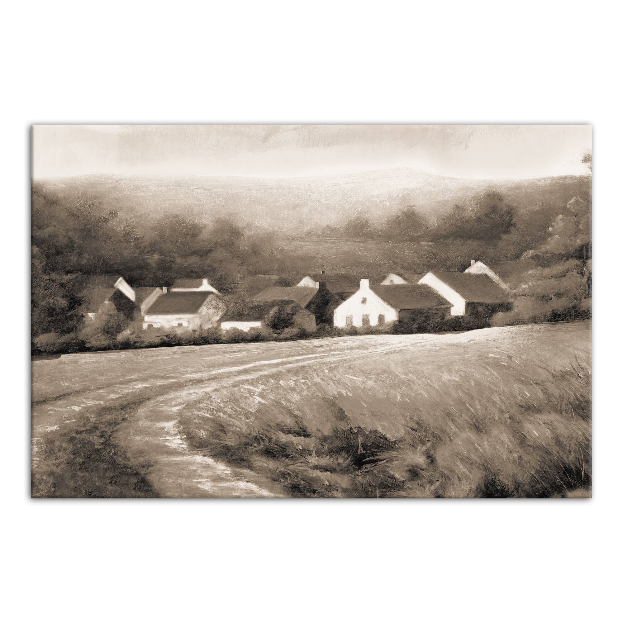 Sepia Town And Field 36" x 24" Canvas Wall Art