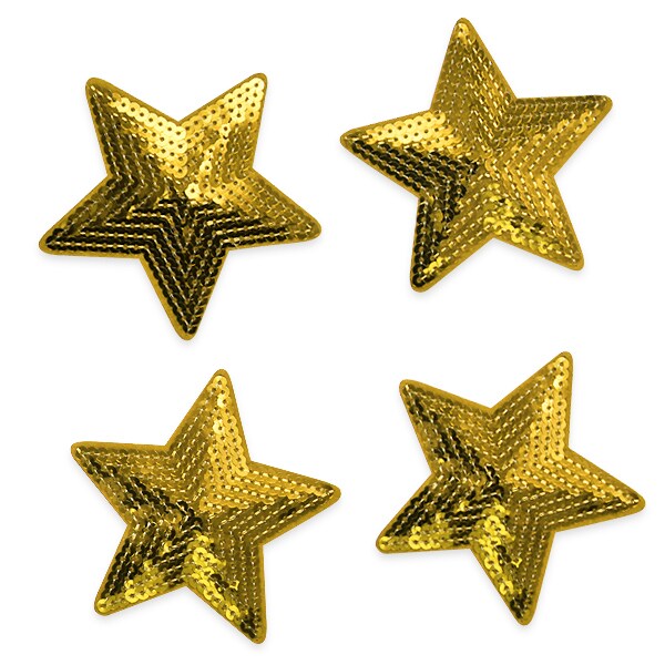 Sequin Star 3" Iron On Applique/Patch Gold 4pc