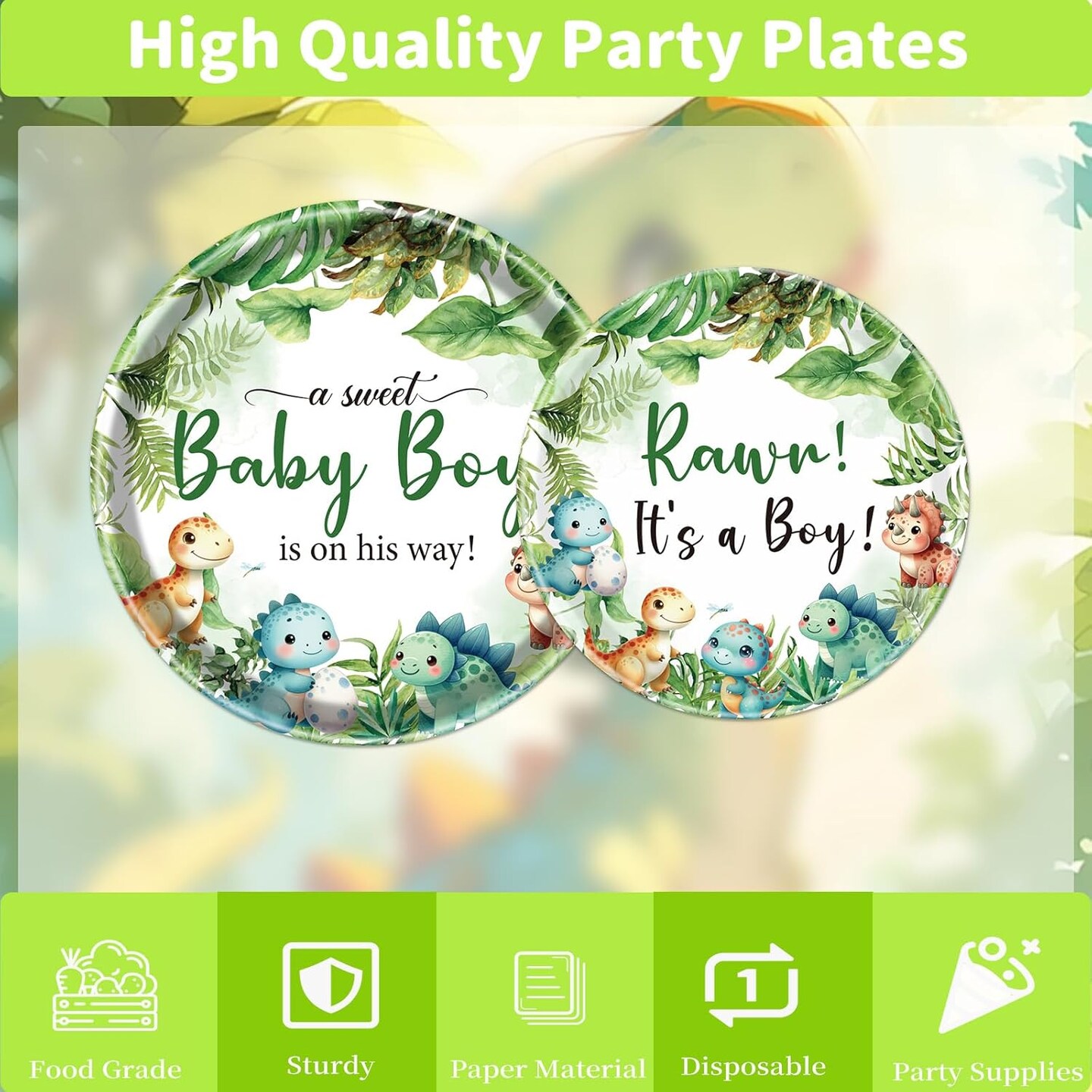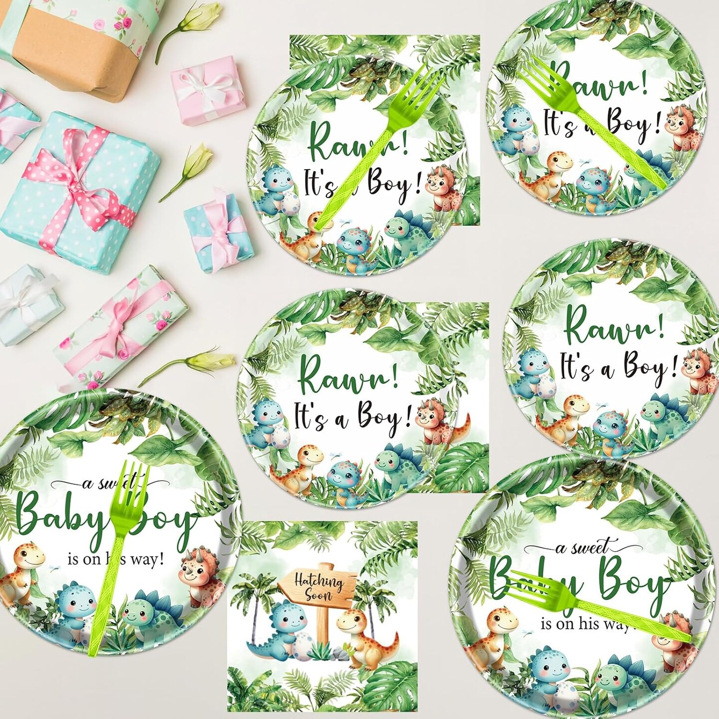 Serves 24,Dinosaur Baby Shower Decorations for Boys, 96PCS (Green)
