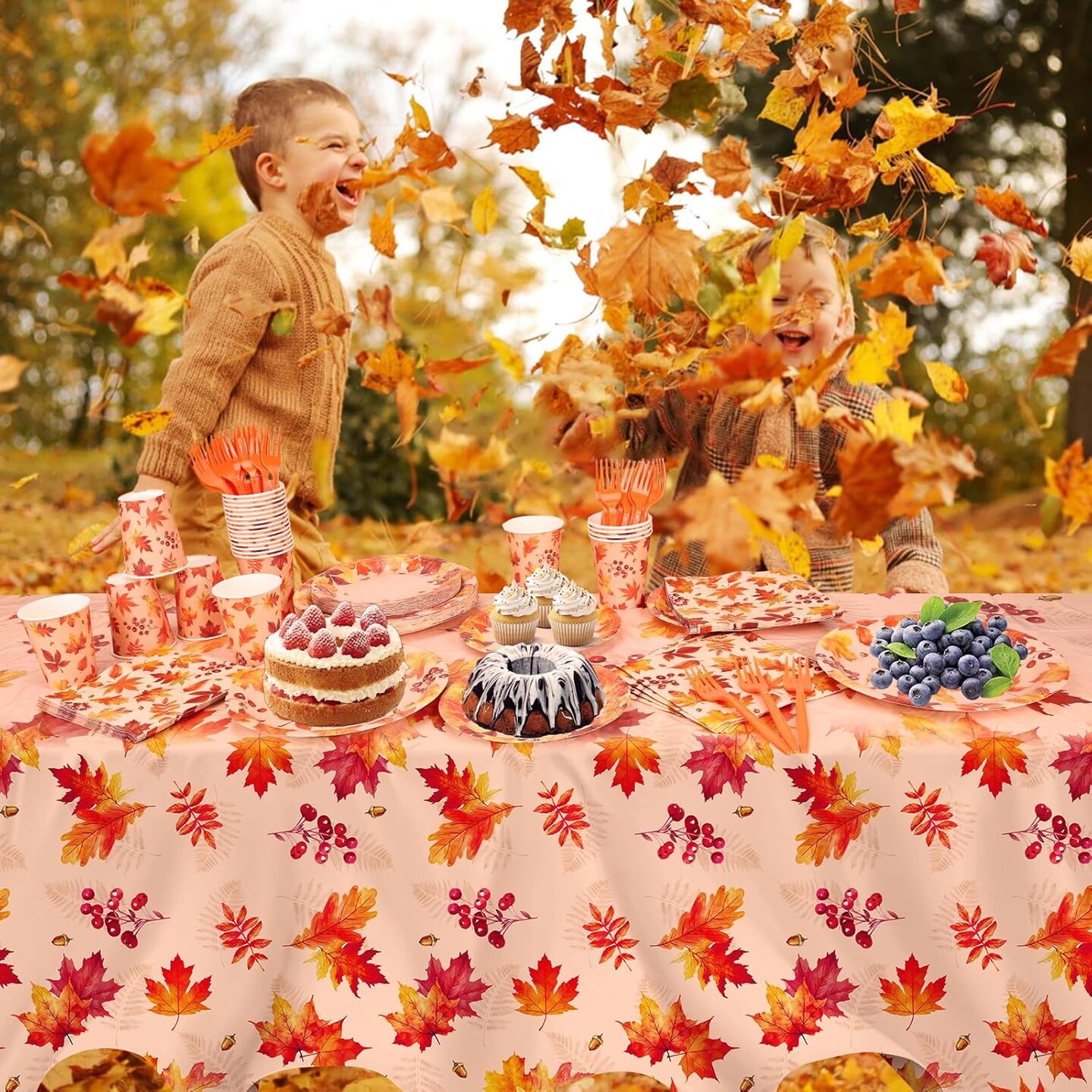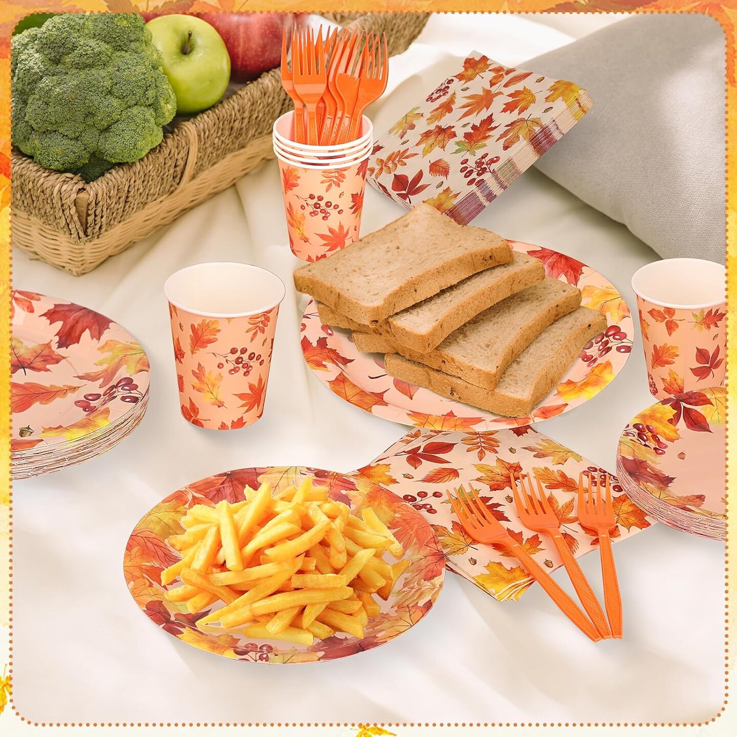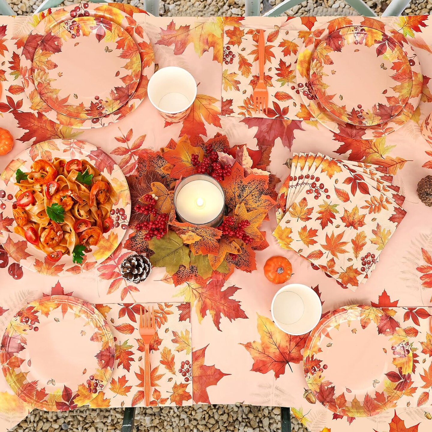 Serves 25 -Thanksgiving Party Supplies, Thanksgiving Paper Plates and Napkins Cups Tablecloth