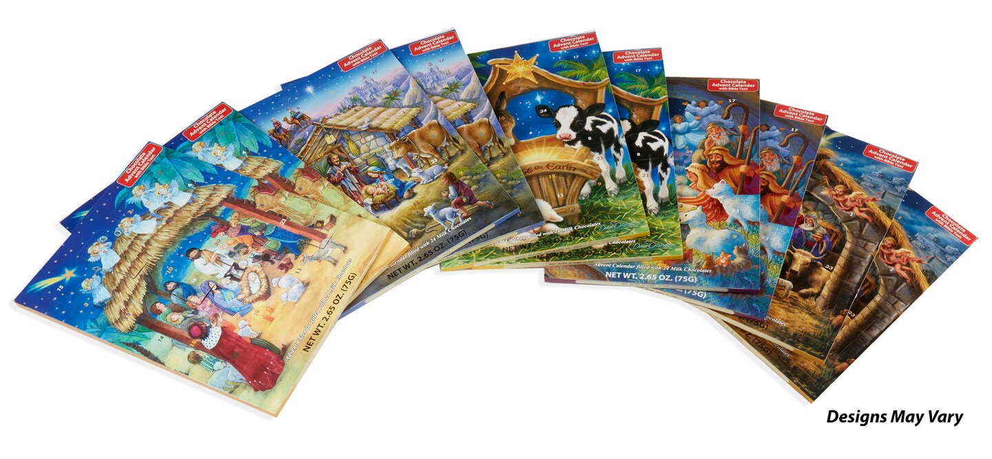 Set of 10 Chocolate Advent Calendars - Assorted Religious Designs - Count Down to Christmas with a Sweet Treat & Follow the Nativity Story