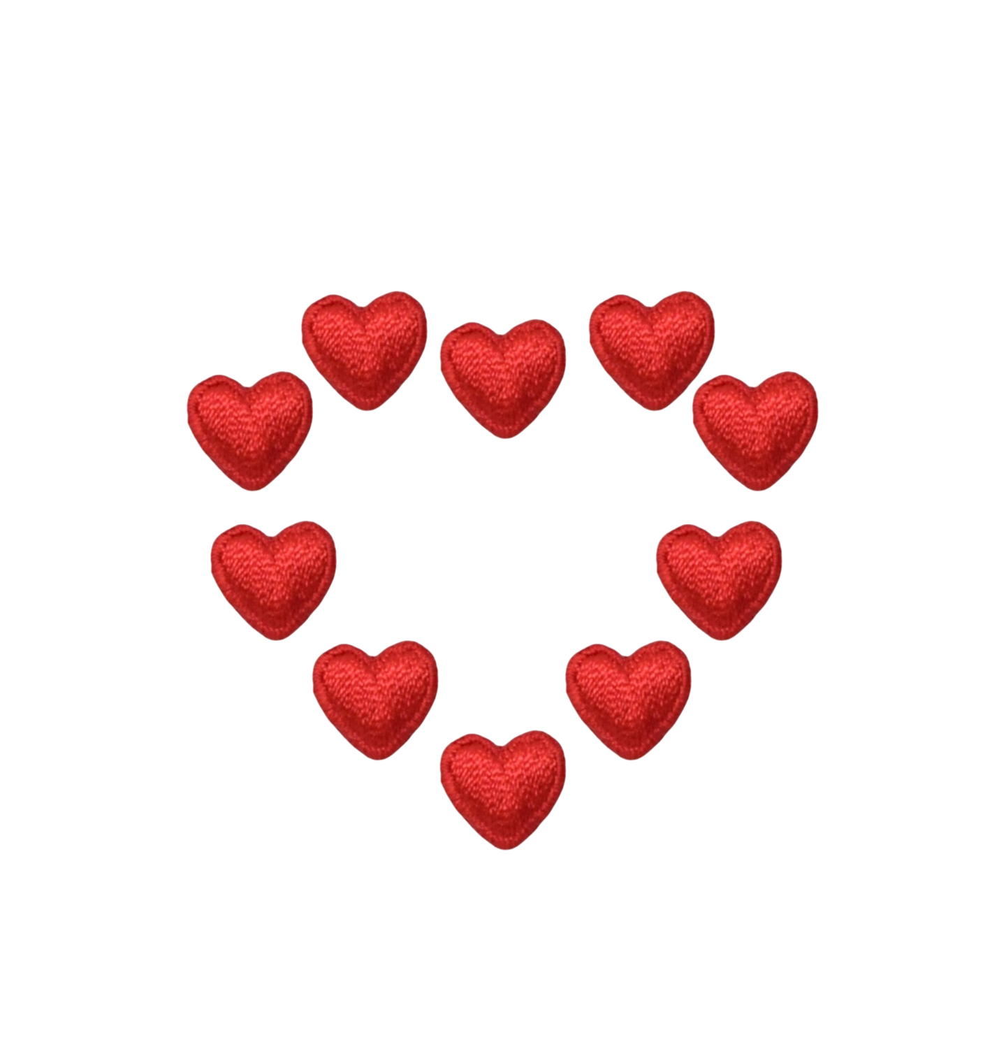 (Set of 10) Red Hearts, Embroidered, Iron on Patch