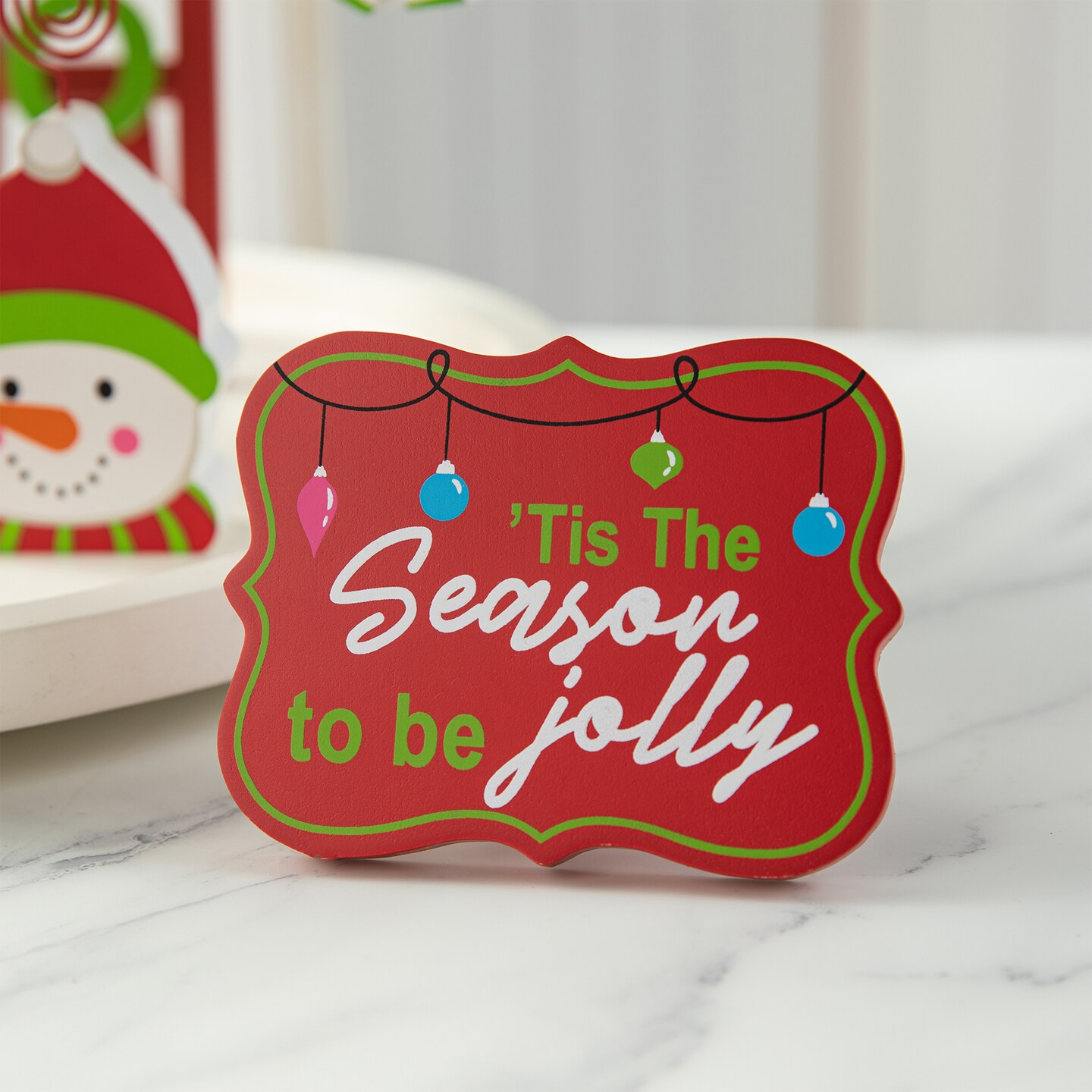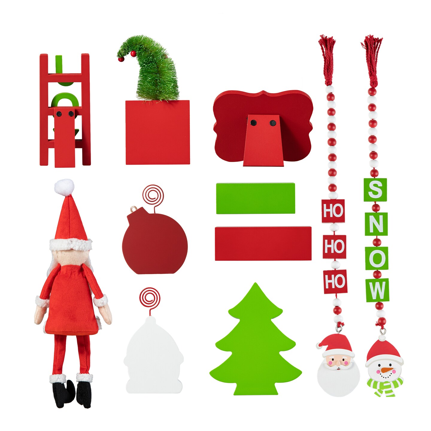 Set of 11 Christmas Wooden Word Signs and Fabric Santa Tiered Tray Set Table Décor