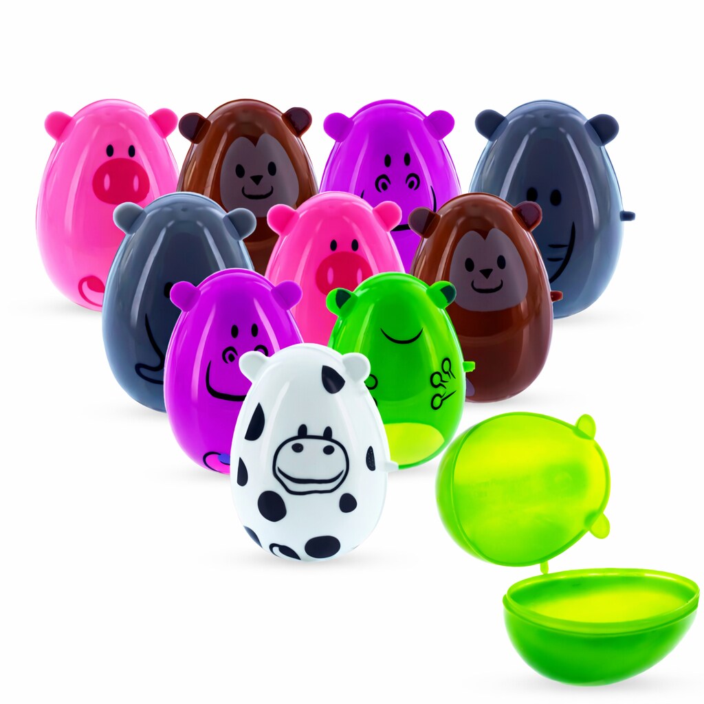 Set of 12 Animal-Themed Plastic Easter Eggs 2.25 Inches