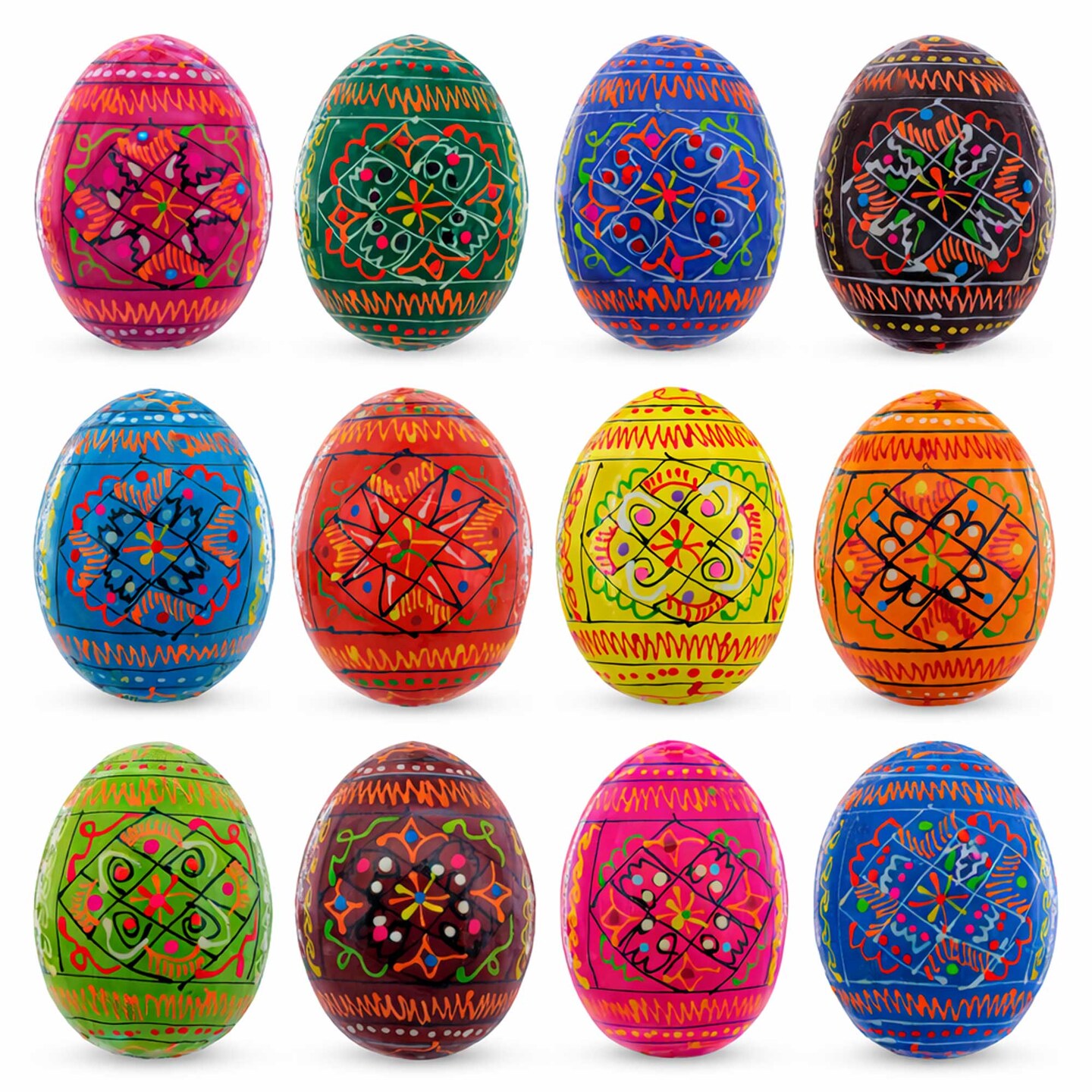 Set of 12 Geometrical Wooden Ukrainian Easter Eggs Pysanky 2.5 Inches