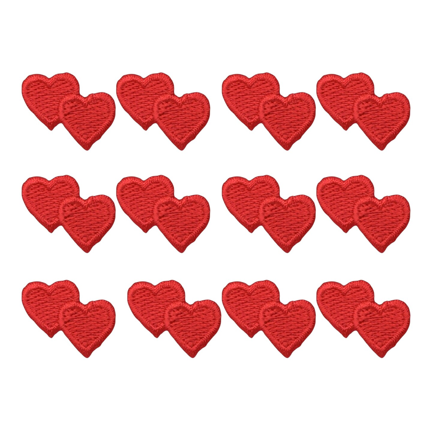 Set of 12, Mini Red Double Heart, Valentine, Embroidered, Iron on Patch