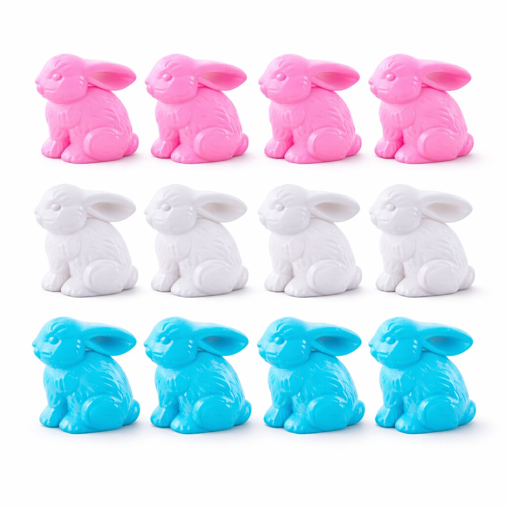 Set of 12 Multicolored Bunnies Fillable Plastic Easter Eggs