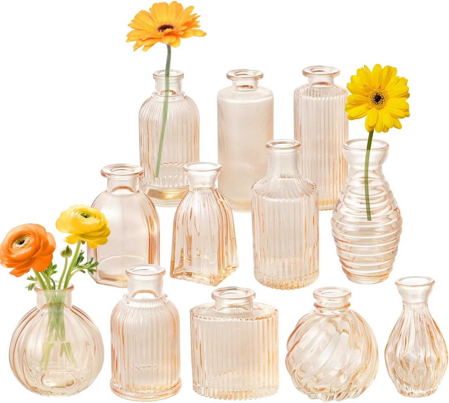 Set of 12 Small Glass Bud Vases Ribbed Modern Vintage Flower Vases