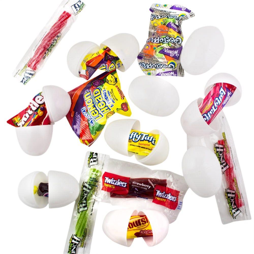 Set of 12 White Plastic Eggs with Candy 2.25 Inches