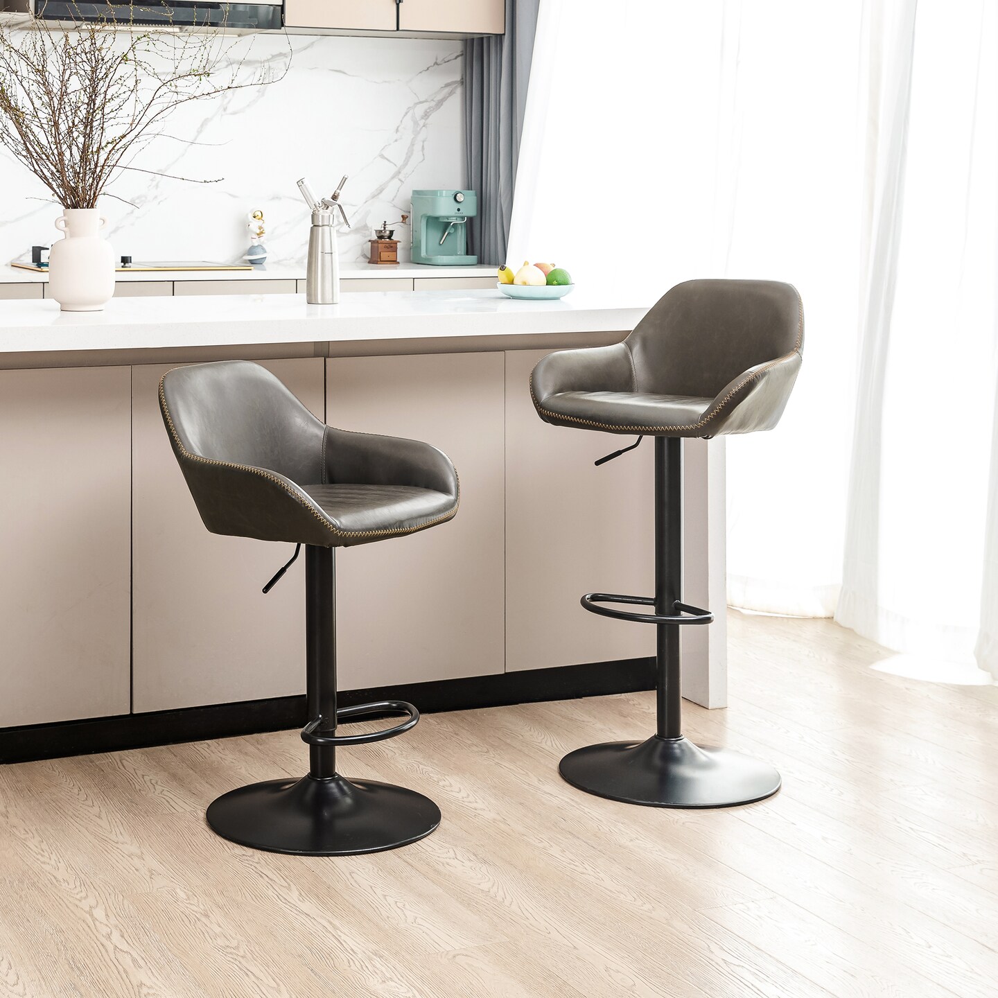 Set of 1/2/3/4 Mid-Century Modern Leatherette Gaslift Adjustable Swivel Bar Stools