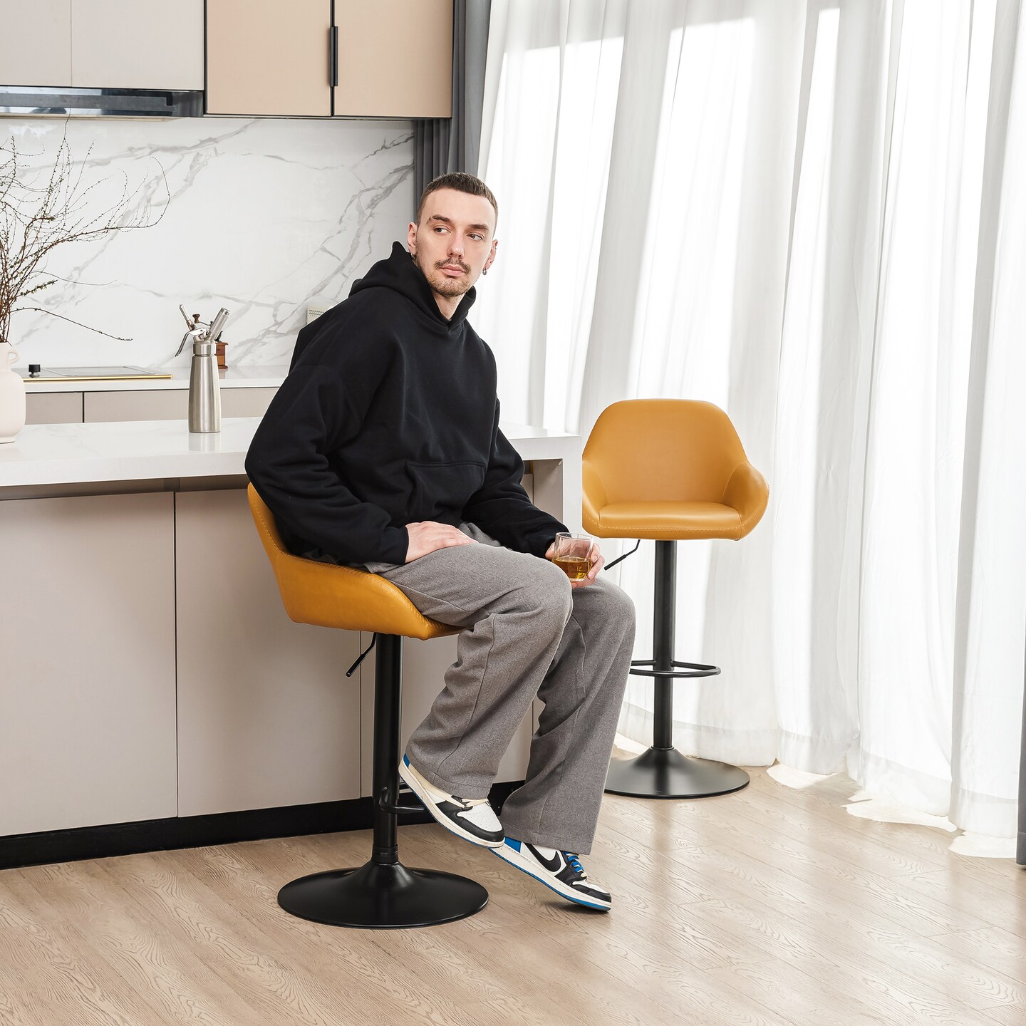 Set of 1/2/3/4 Mid-Century Modern Leatherette Gaslift Adjustable Swivel Bar Stools