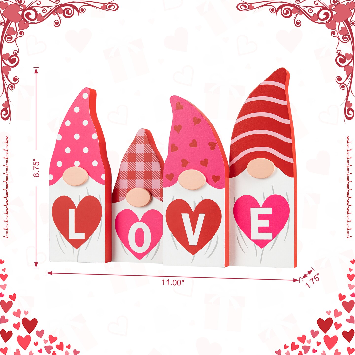Set of 2 11"L Valentine's Love Wooden Gnome Table Decor