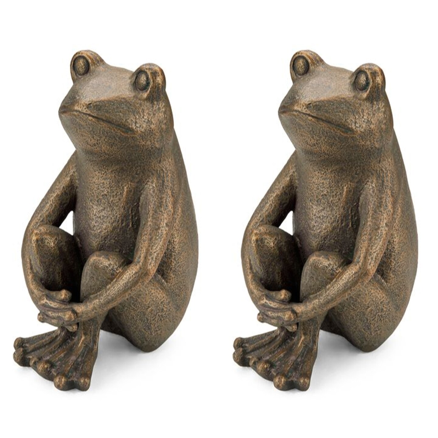 Set of 2 12''H Resin Bronze Squatting Frog Statue