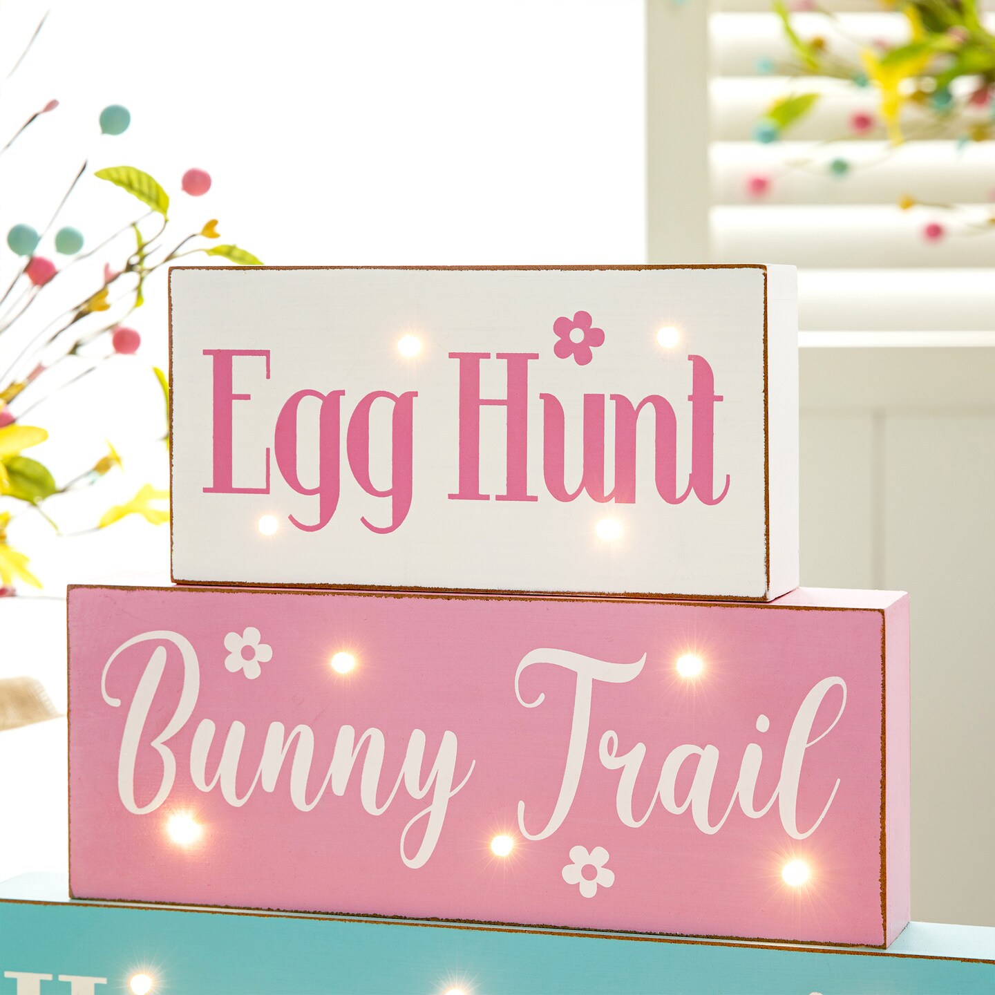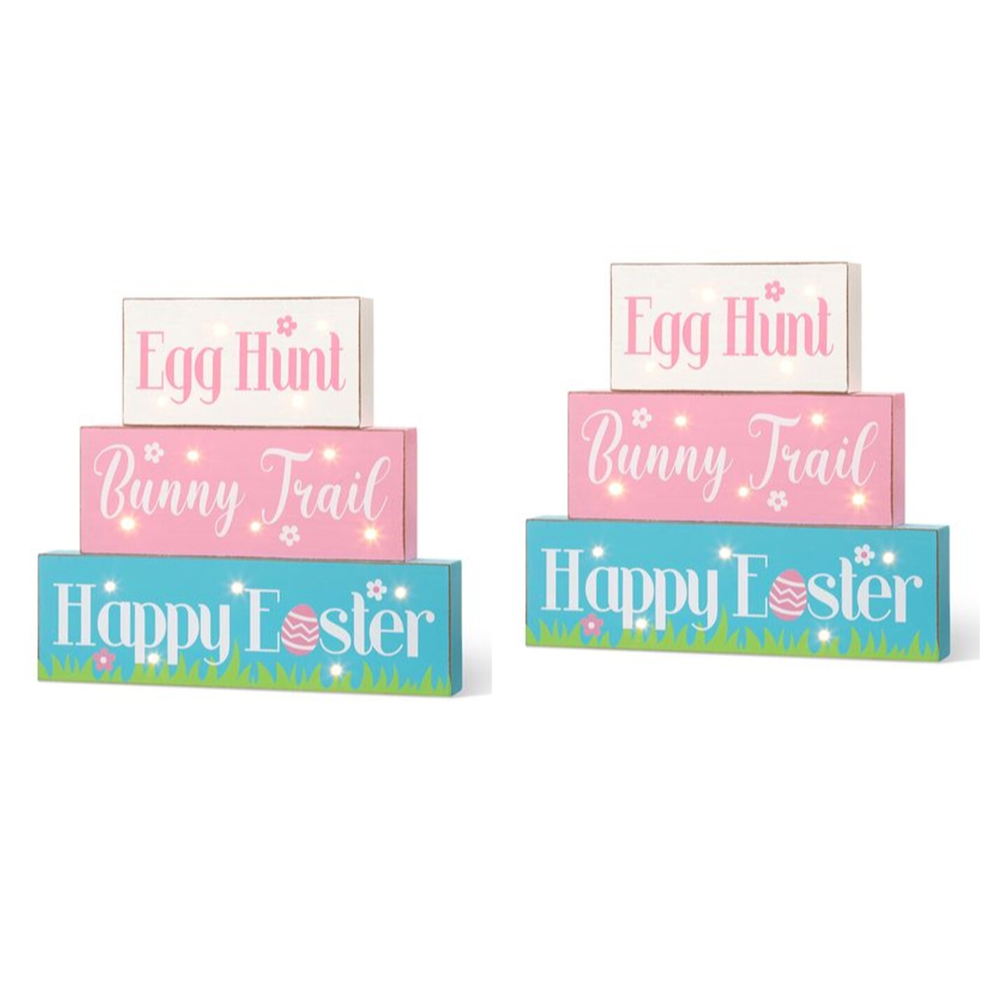 Set of 2 12"L Easter LED Lighted Wooden/Metal Block Word Sign (14 Bulbs)