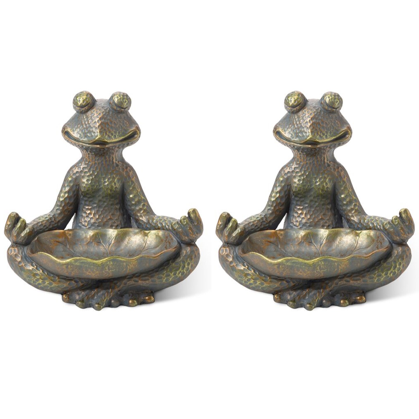Set of 2 14.25"H Bronze MGO Yoga Frog Statue