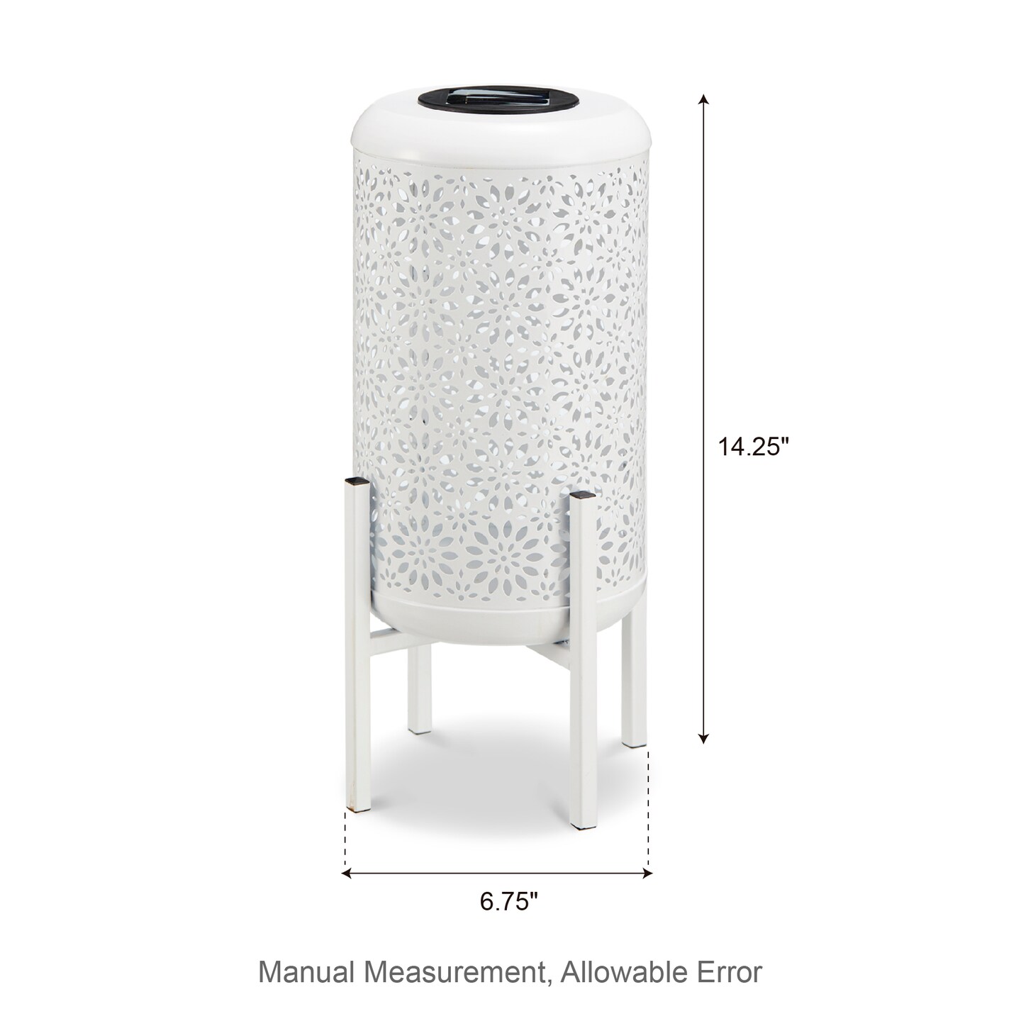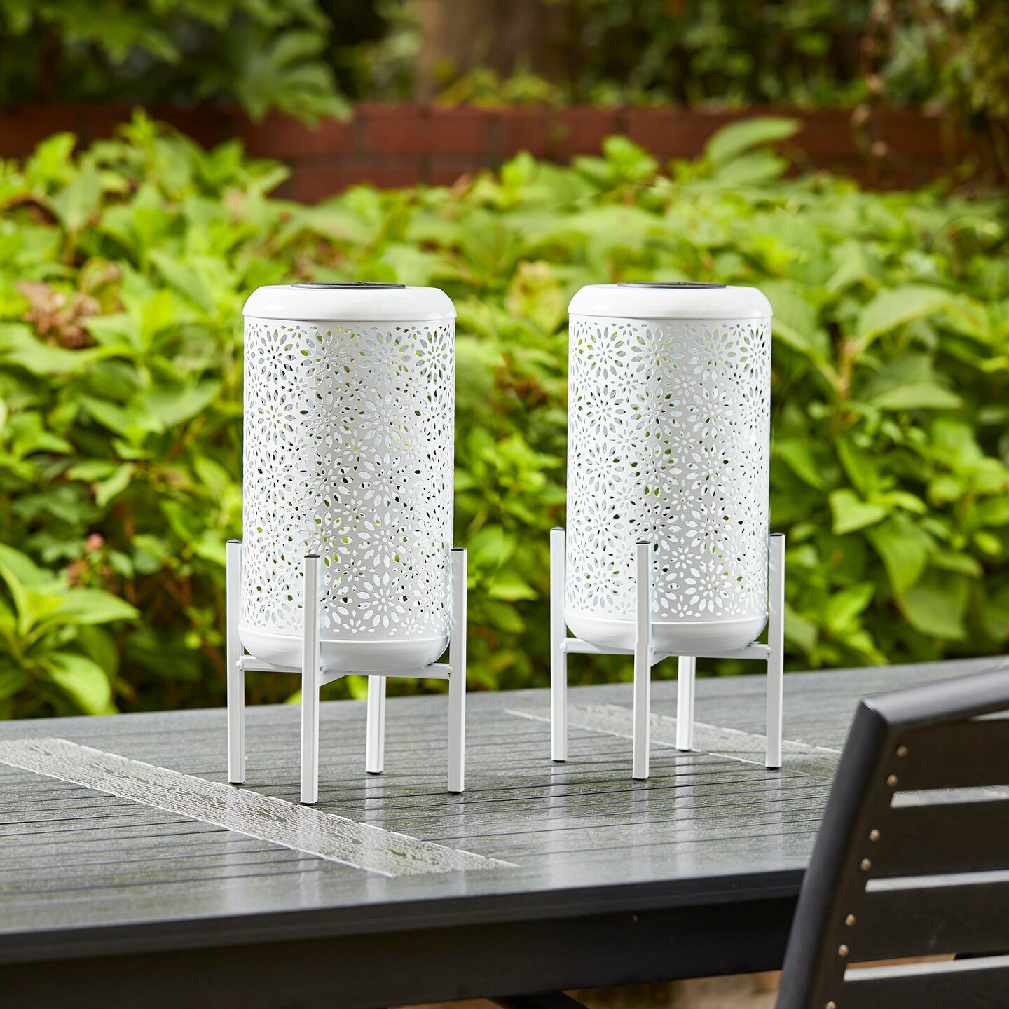 Set of 2 14.25"H Metal Cutout Flower Pattern Solar Powered LED Outdoor Lantern with Stand