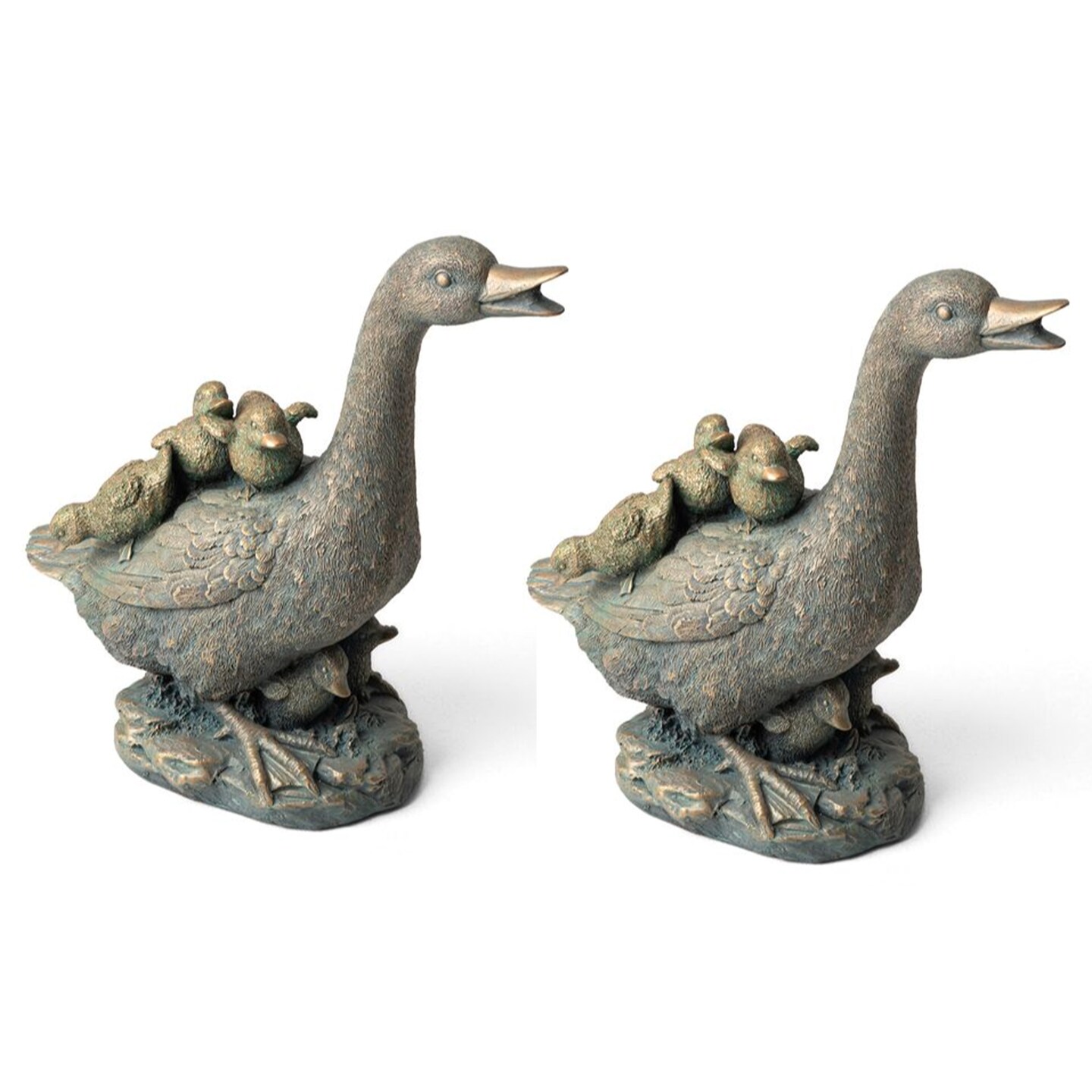 Set of 2 15"H Resin Faux Bronze Duck Garden Statue