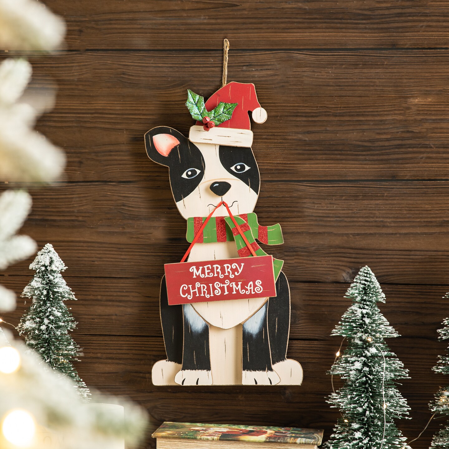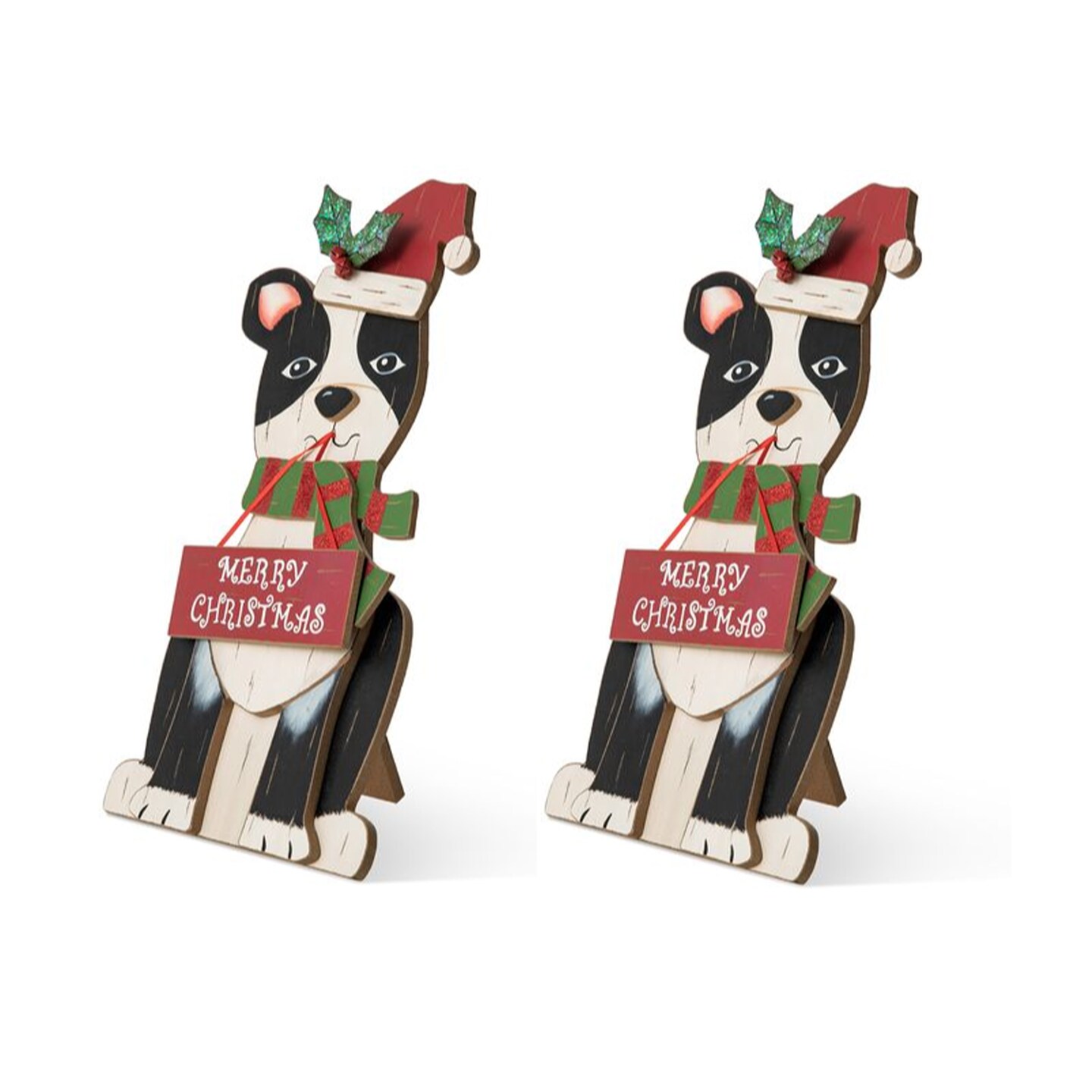 Set of 2 16.00"H Wooden Christmas Figurines Decor, Dog