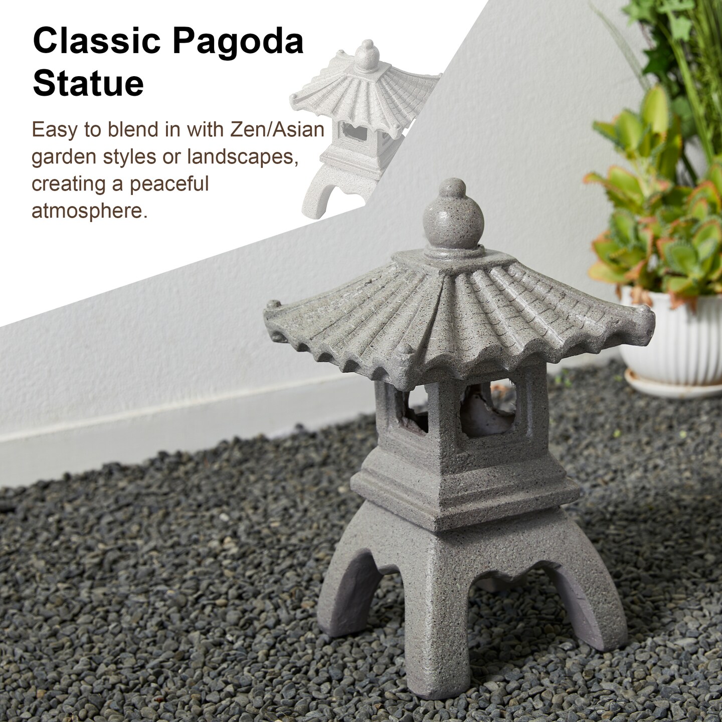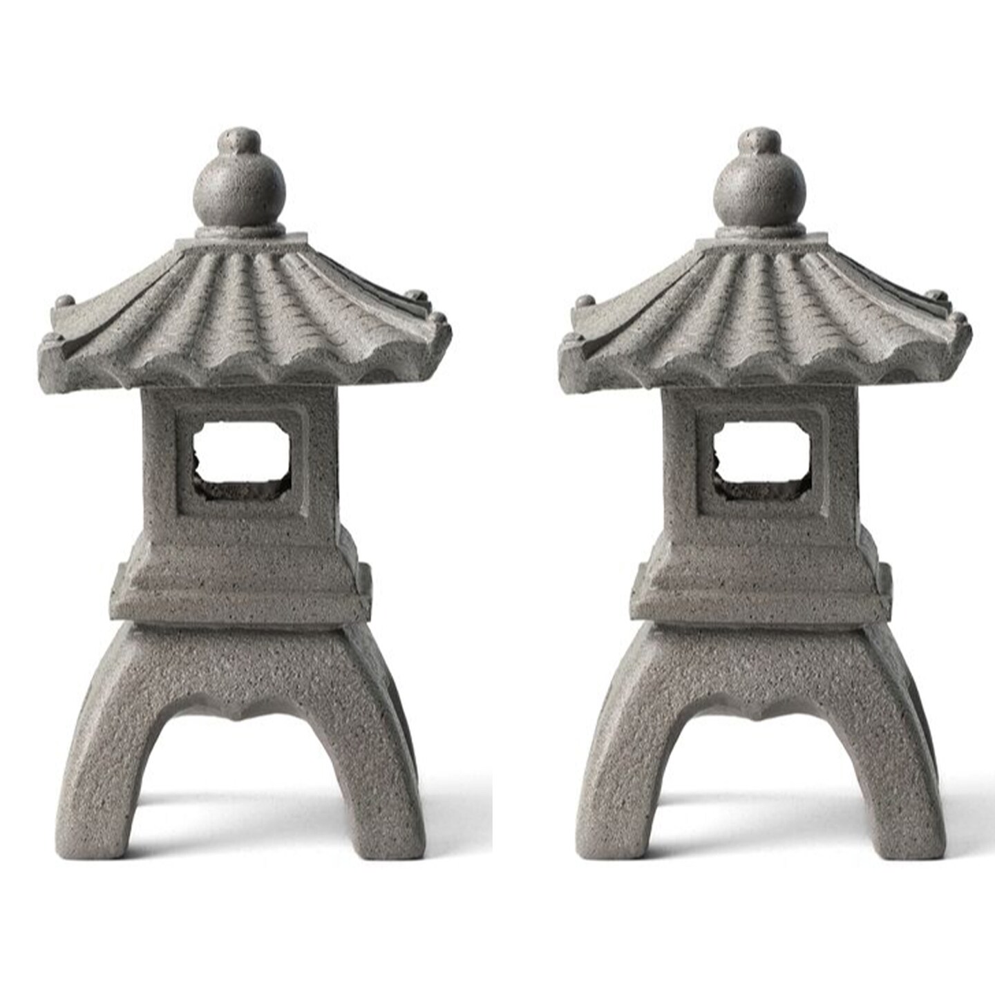 Set of 2 16"H MGO Faux Concrete Pagoda Garden Statue