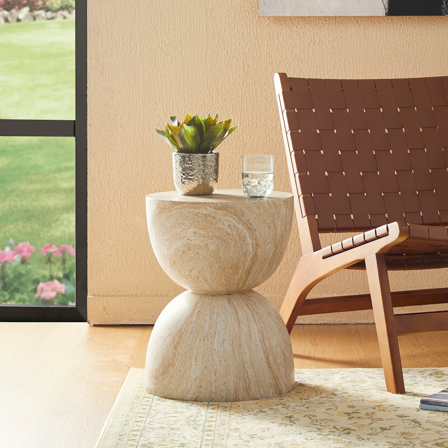 Set of 2 17.75"H Multi-functional MGO Hourglass-Style Faux Travertine Garden Stool or Planter Stand or Accent Table
