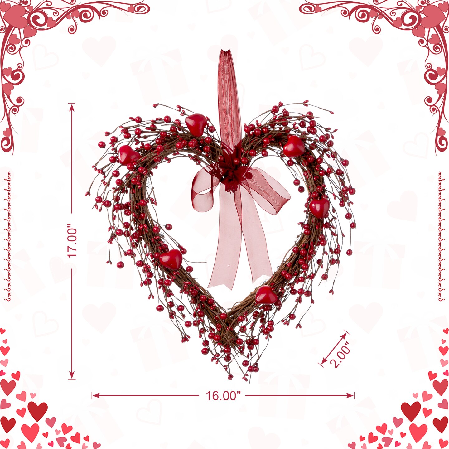 Set of 2 17"H Valentine's Berry Heart Wreath Hanging Decor