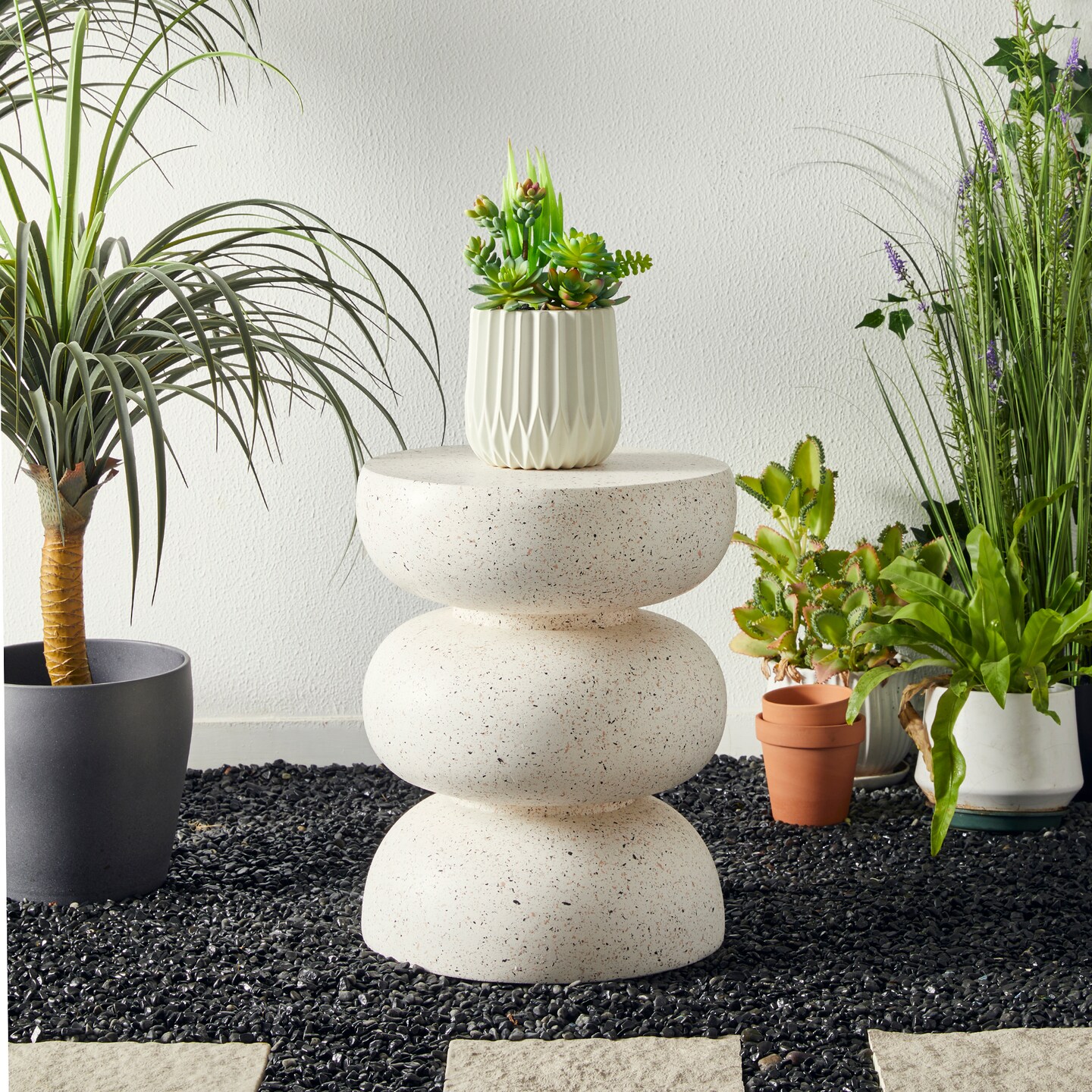 Set of 2 18"H Multi-functional MGO Faux Terrazzo Garden Stool or Planter Stand or Accent Table