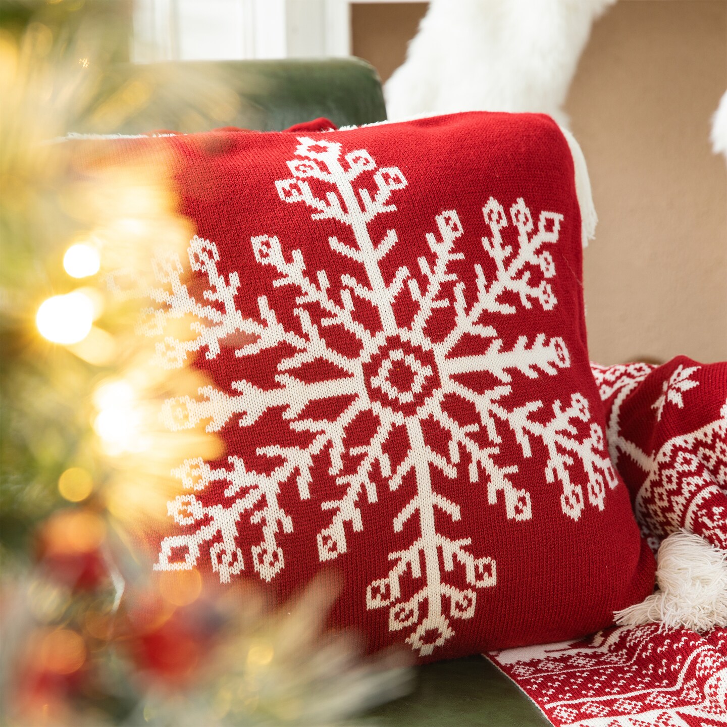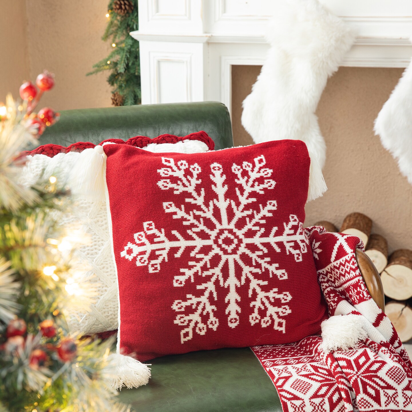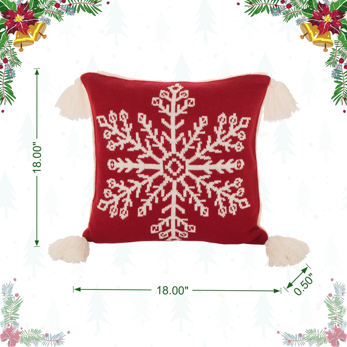 Set of 2 18"L*18"W Knitted Snowflake Acrylic Red Pillow Cover w/Tassels