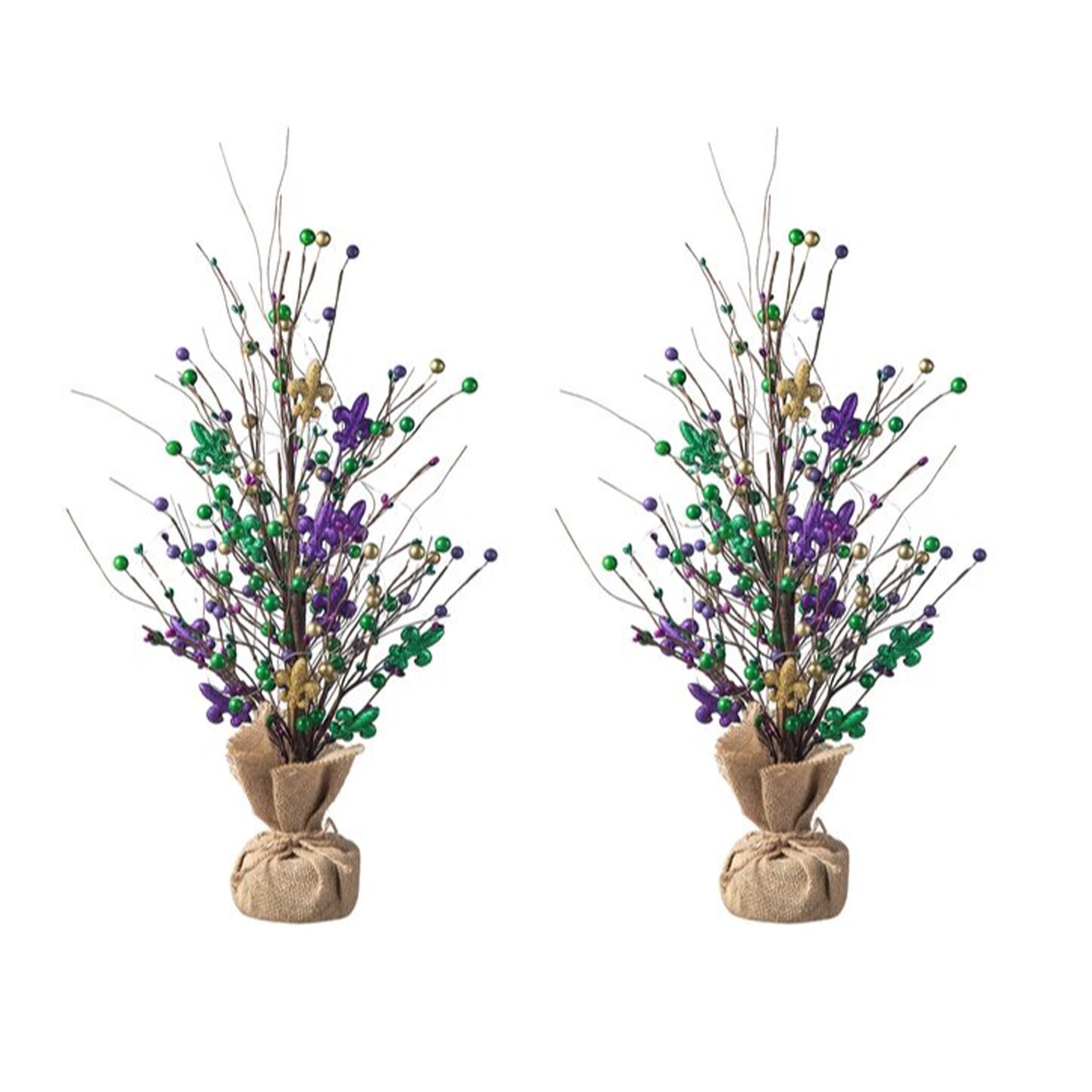 Set of 2 21"H Lighted Mardi Gras Fleur-de-Lis & Berry Table Tree