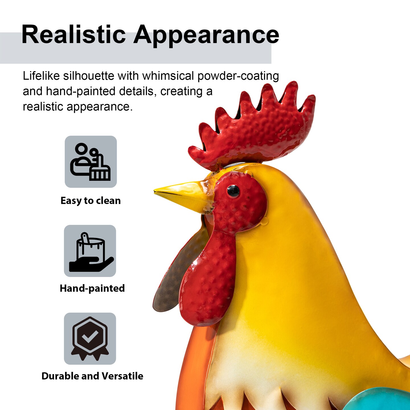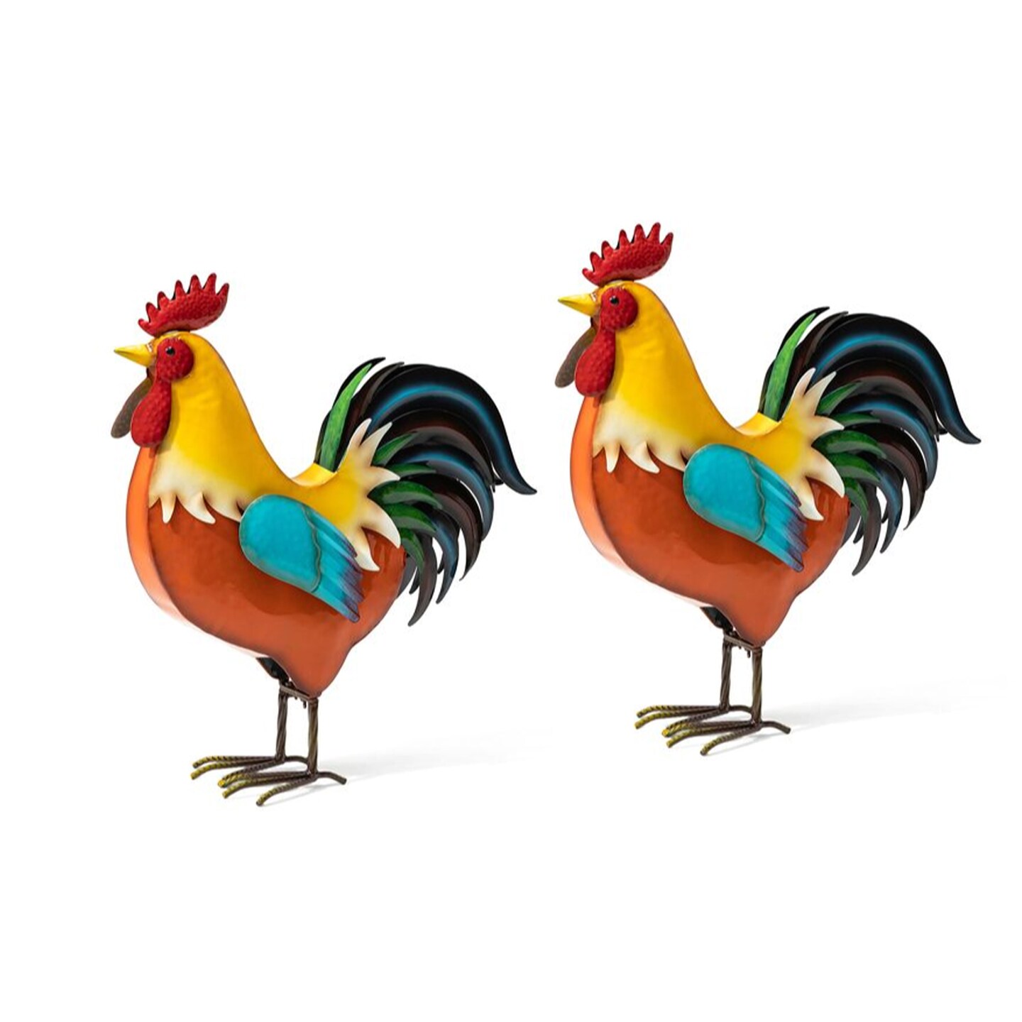 Set of 2 21"H Metal Vibrant Standing Rooster Garden Statue