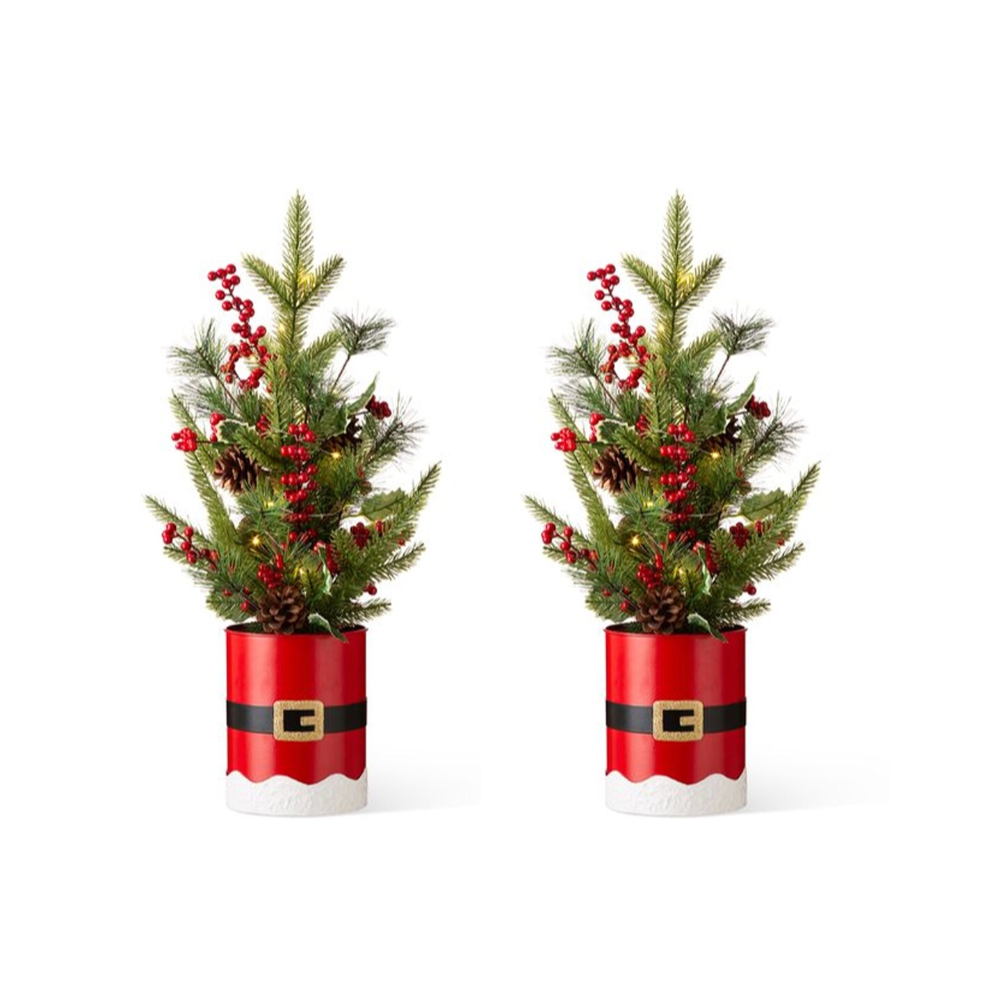 Set of 2 22"H Lighted Santa Belt Potted Table Tree