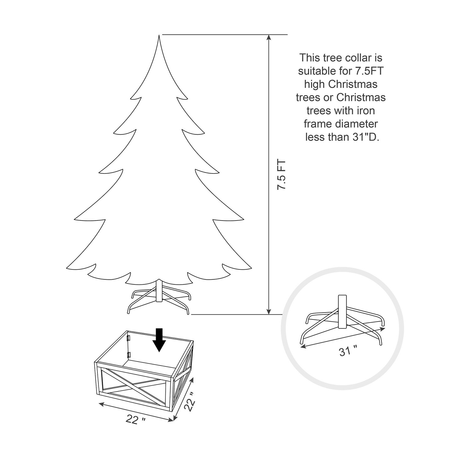 Set of 2 22"L Wooden Tree Collar With X-shape Design