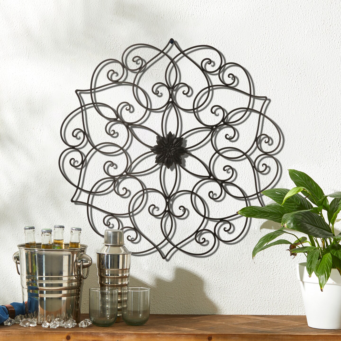 Set of 2 23"D Traditional Floral Iron Scroll Outdoor Wall Decor