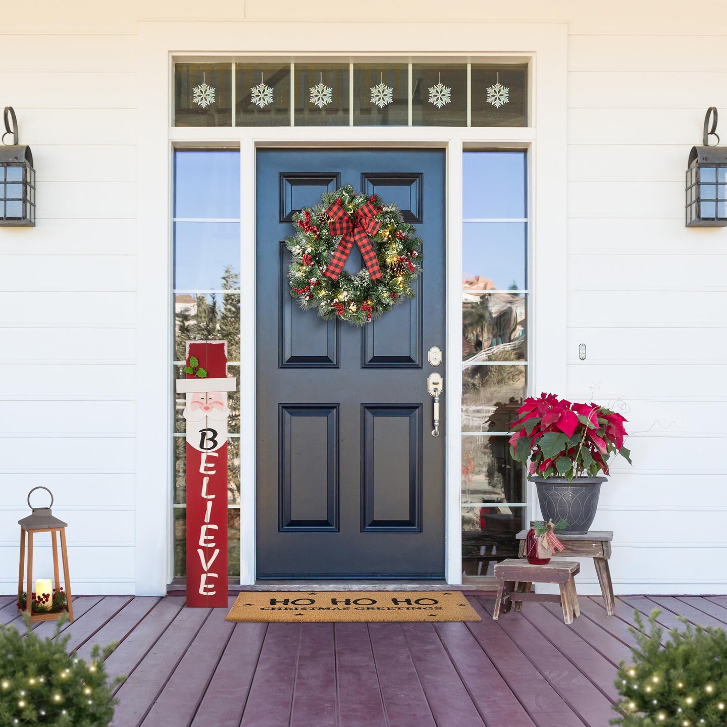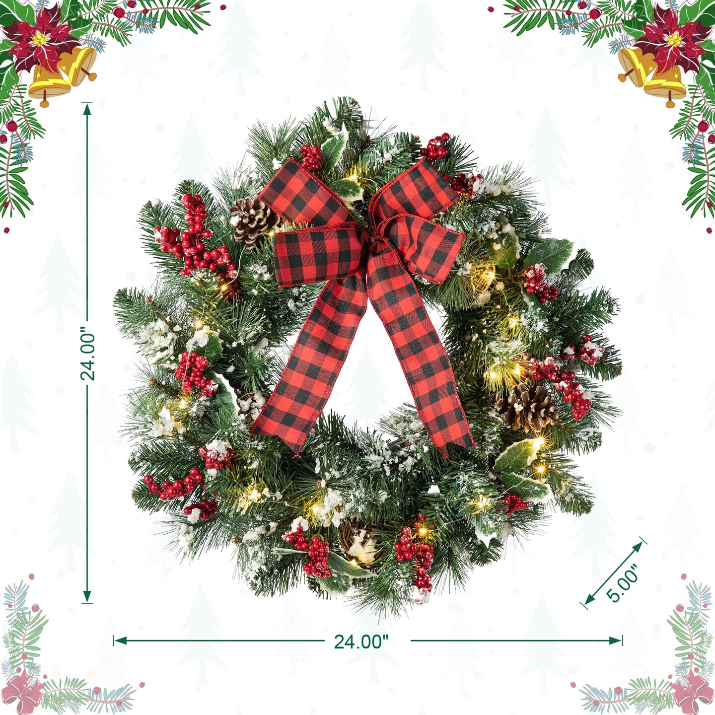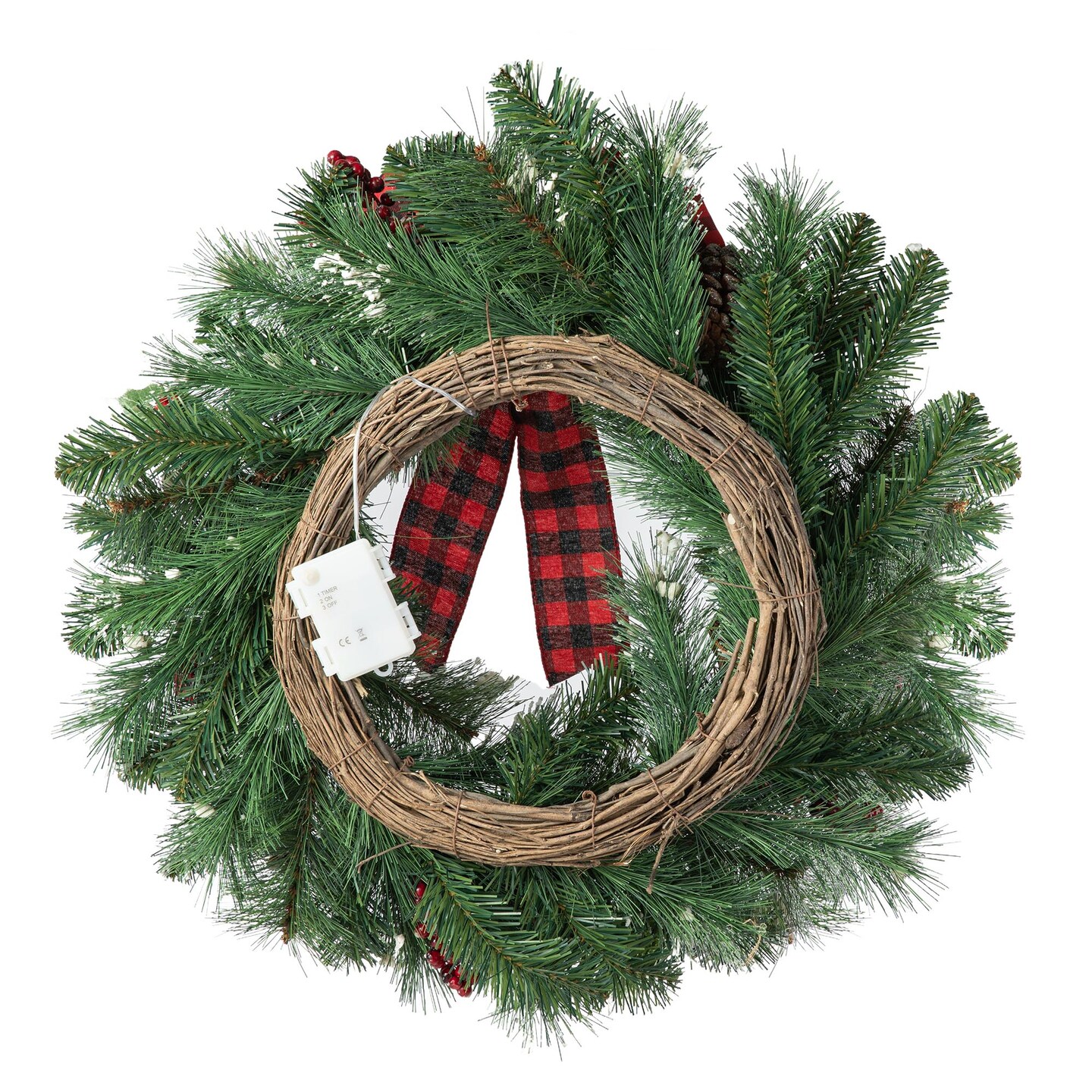 Set of 2 24" LED Greenery Twig Ball Pinecone Holly Pine Wreath