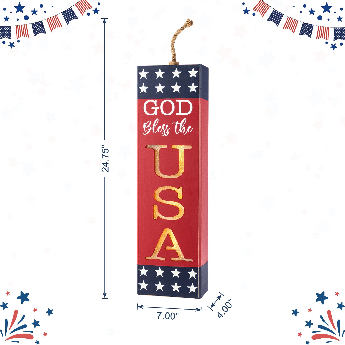 Set of 2 24.75"H Lighted Patriotic/ Americana Wooden Firecracker Porch Decor