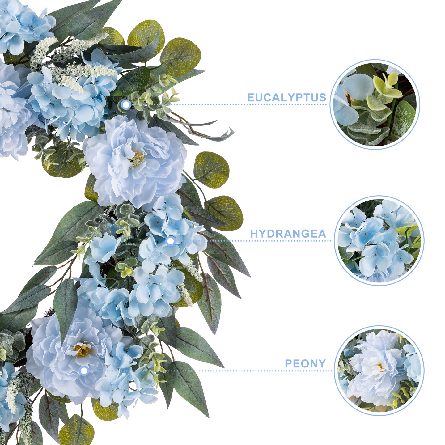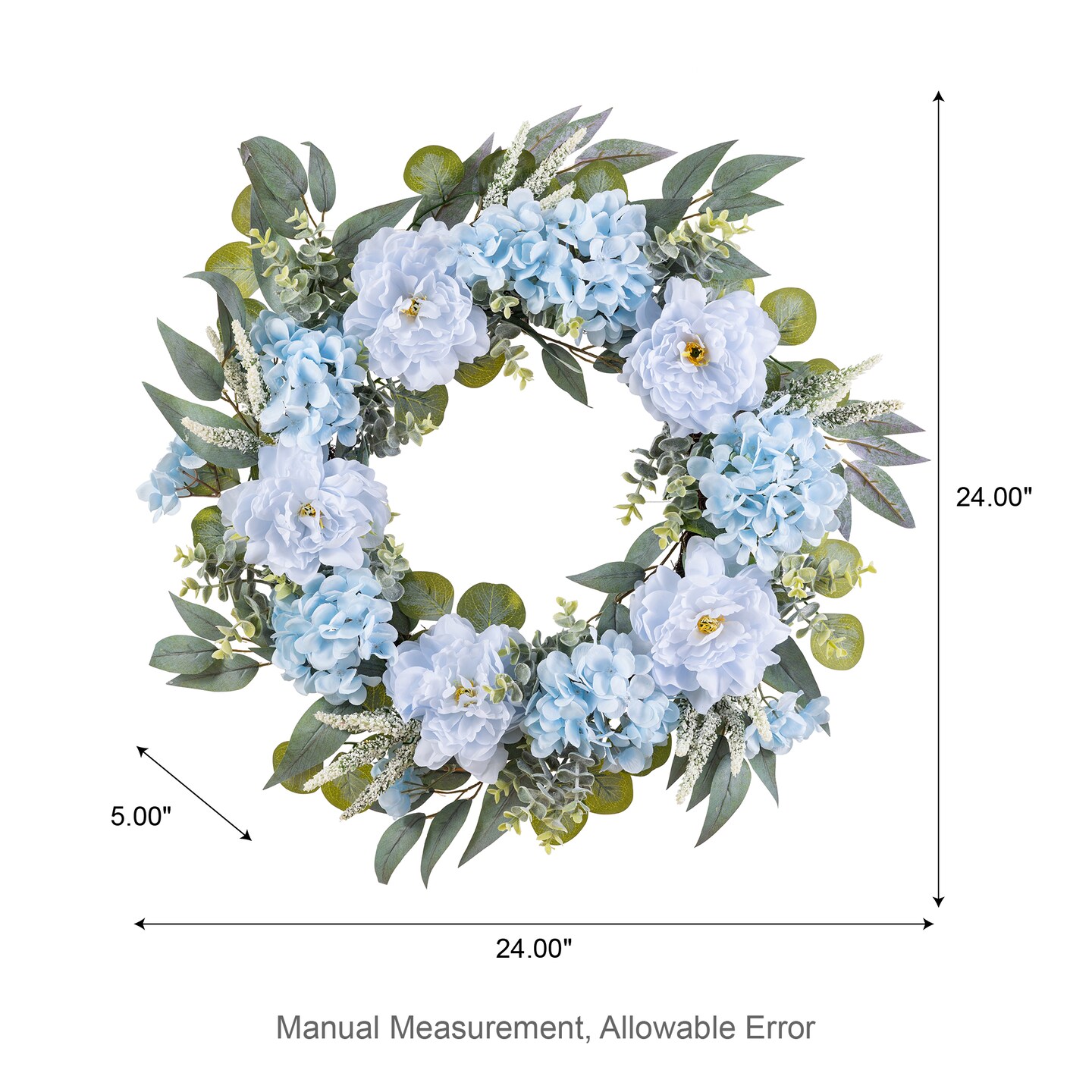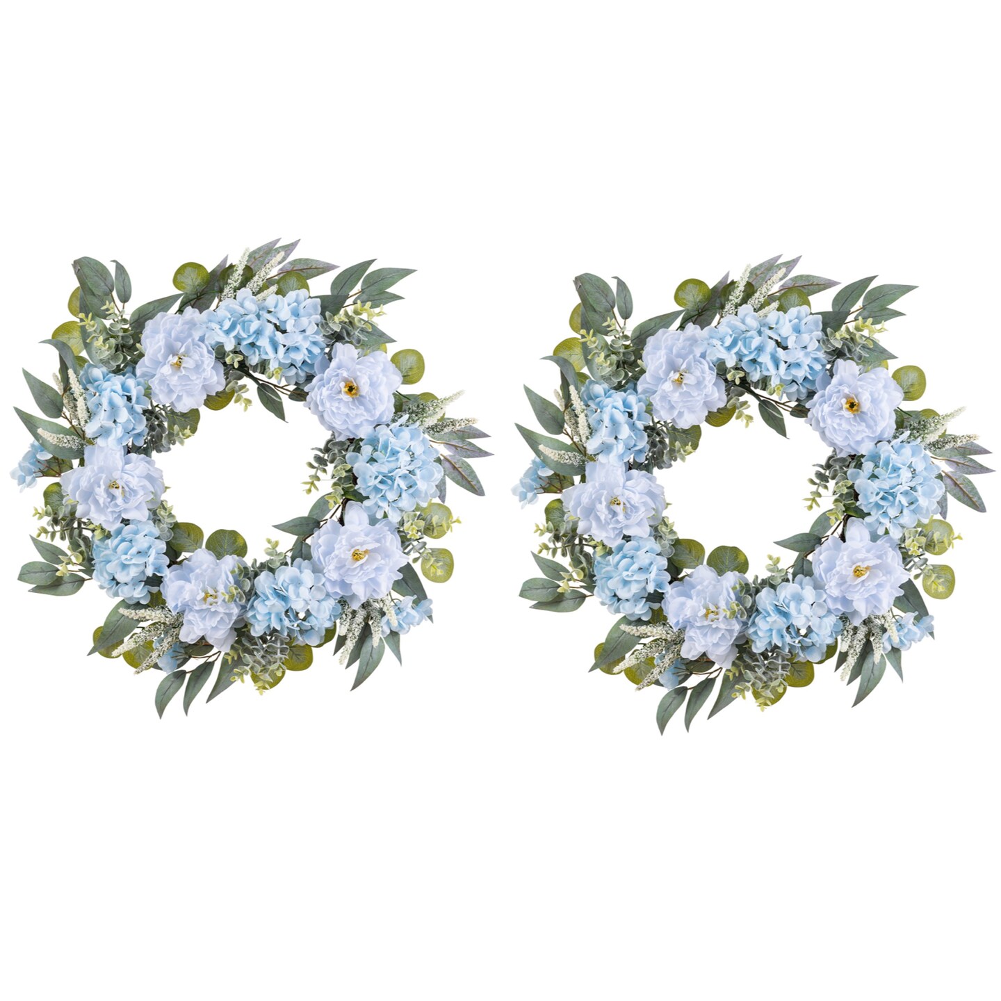 Set of 2 24"D Blue Peony & Hydrangea Floral Wreath Includes a Complimentary Black Metal Wreath Hanger