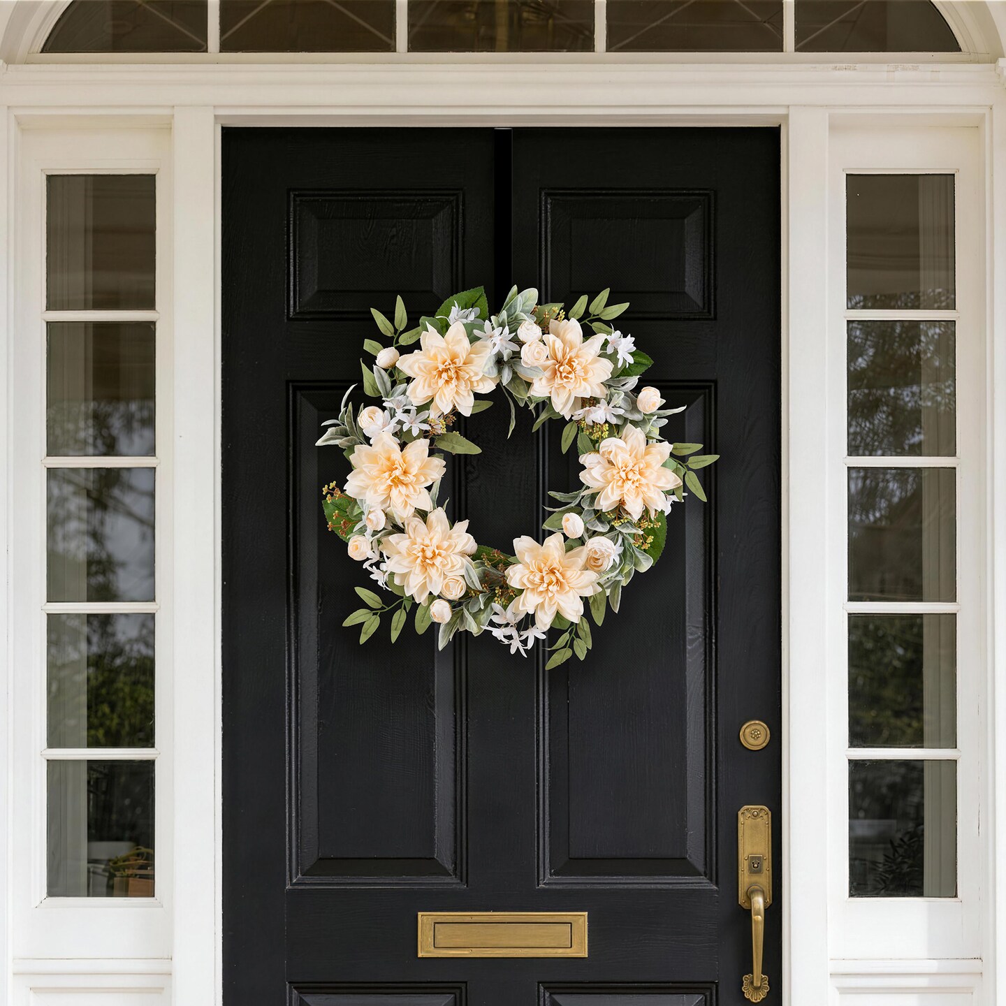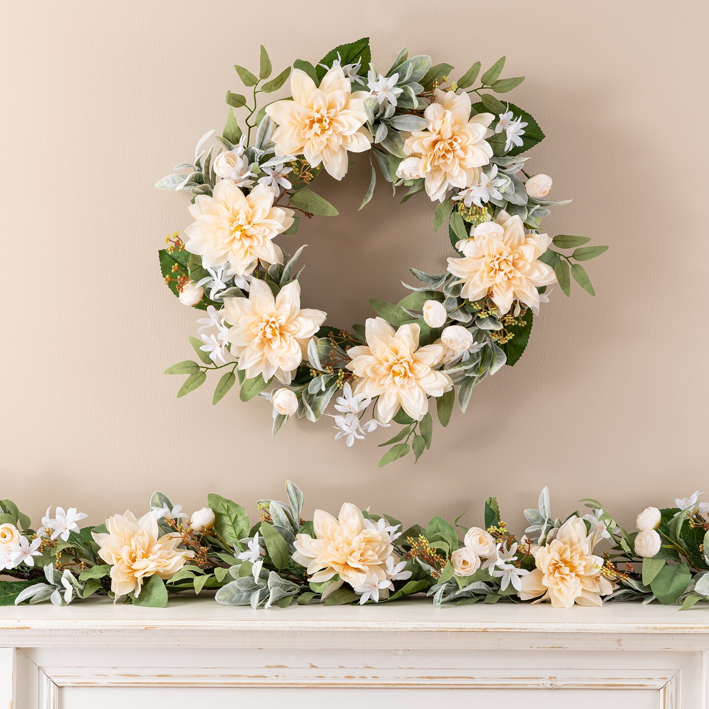 Set of 2 24"D Peach Dahlia Floral Wreath Includes a Complimentary Black Metal Wreath Hanger