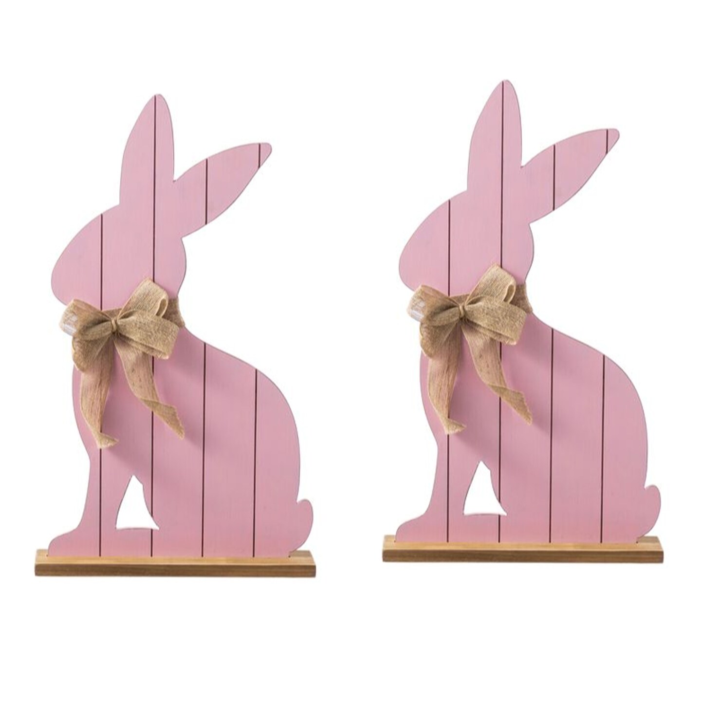 Set of 2 24"H Easter Wooden Pink Bunny Porch Decor (KD)