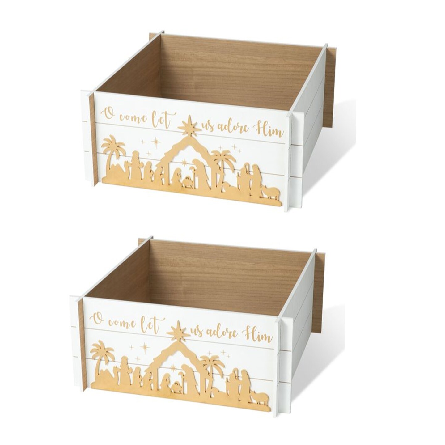 Set of 2 24"L Wooden Nativity Scene Tree Collar