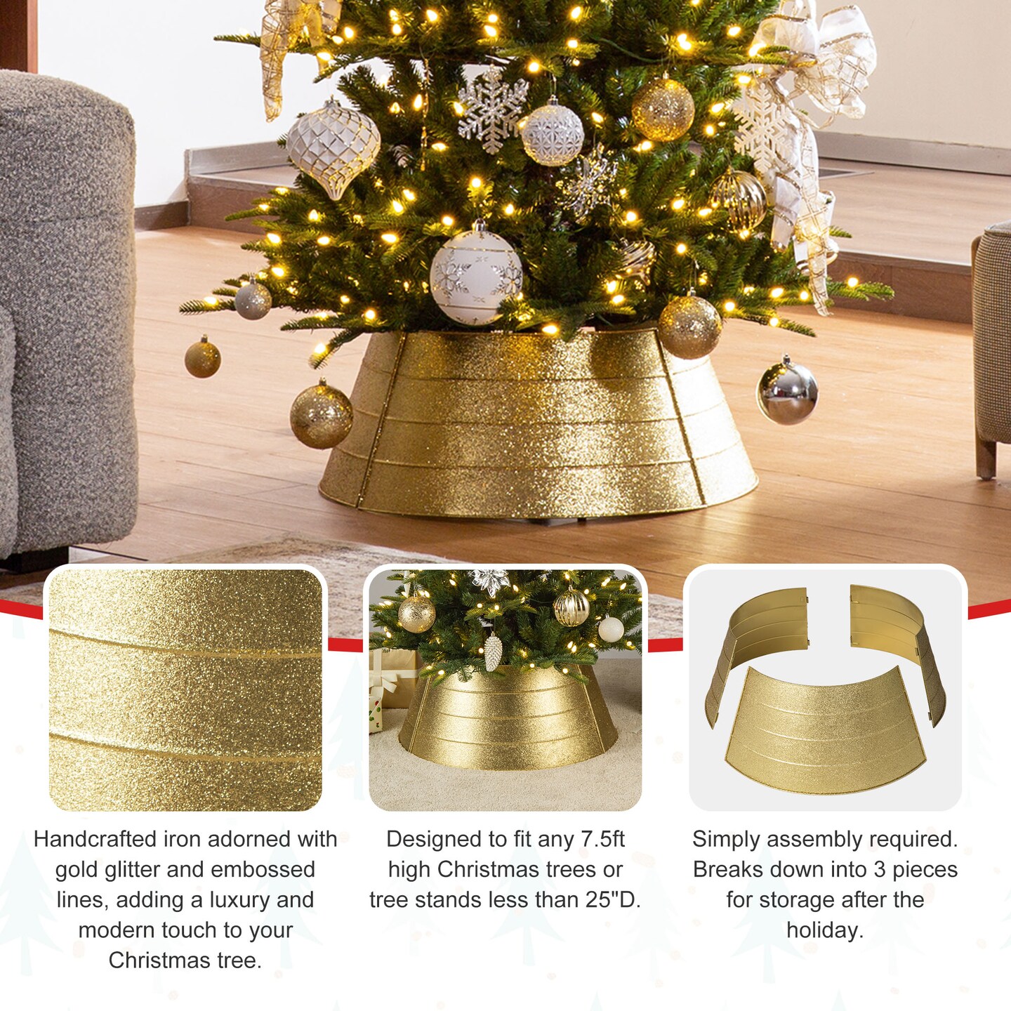 Set of 2 25.75"D Gold Metal Glitter Tree Collar