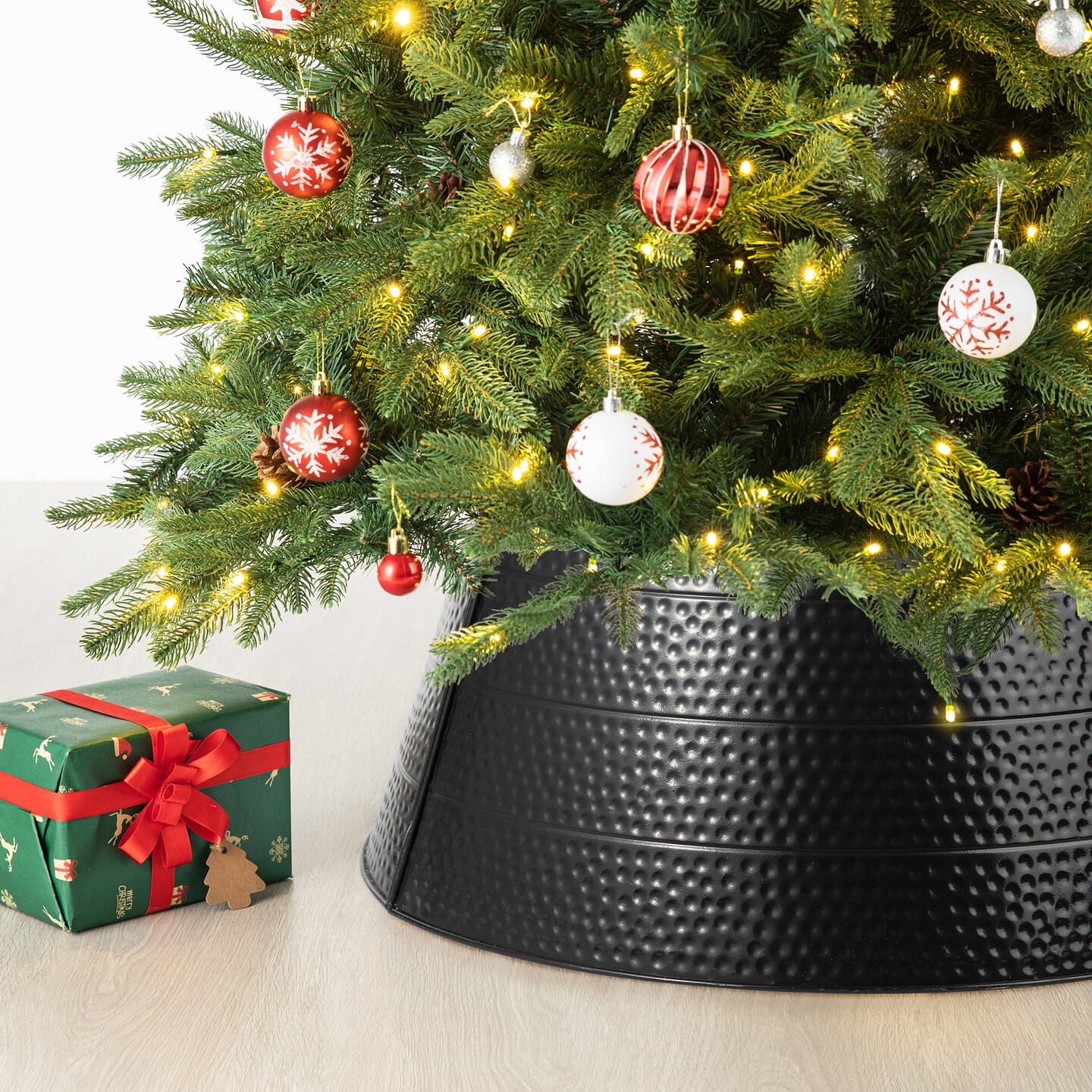 Set of 2 26"D/40.5"D Christmas Hammered Metal Tree Collar