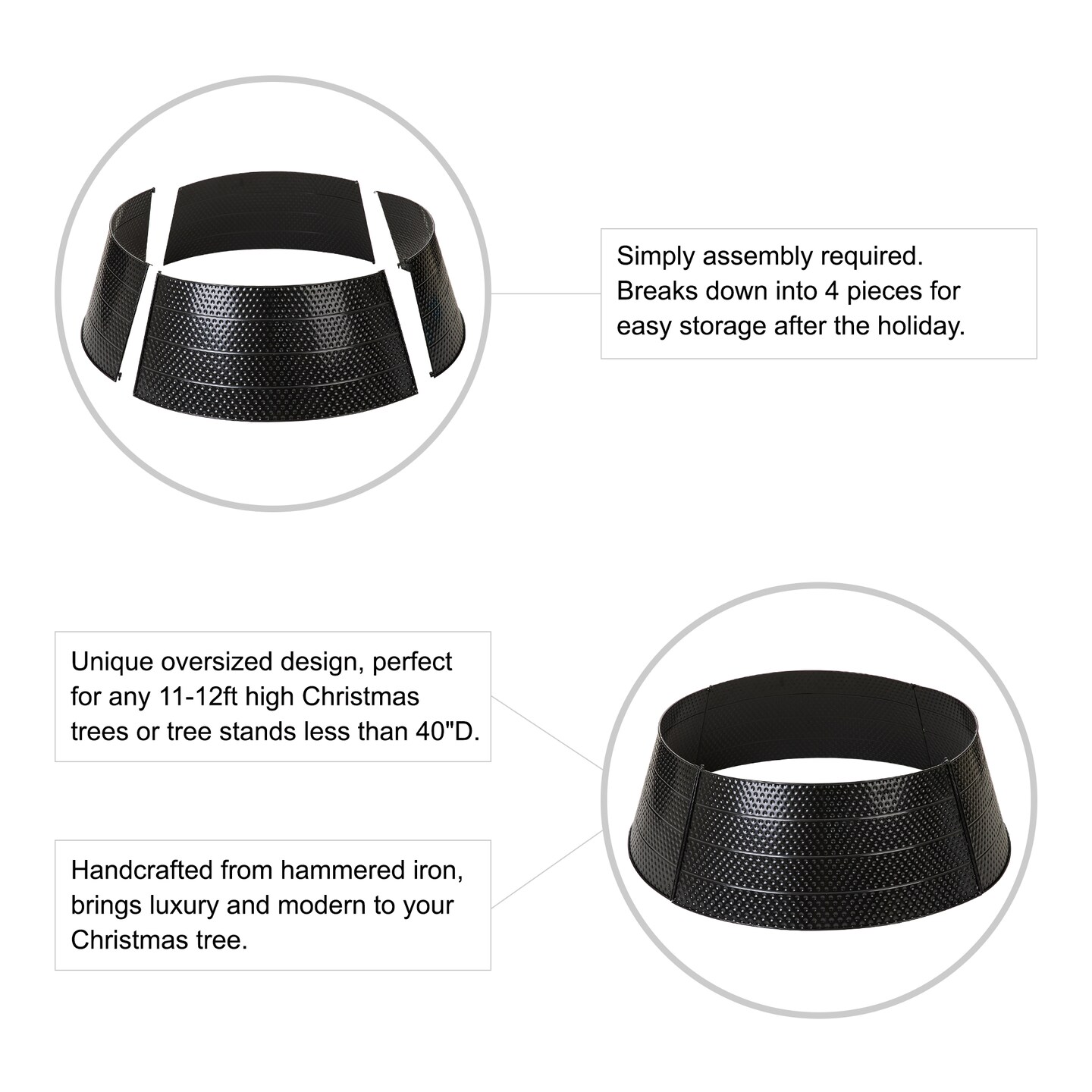 Set of 2 26"D/40.5"D Christmas Hammered Metal Tree Collar