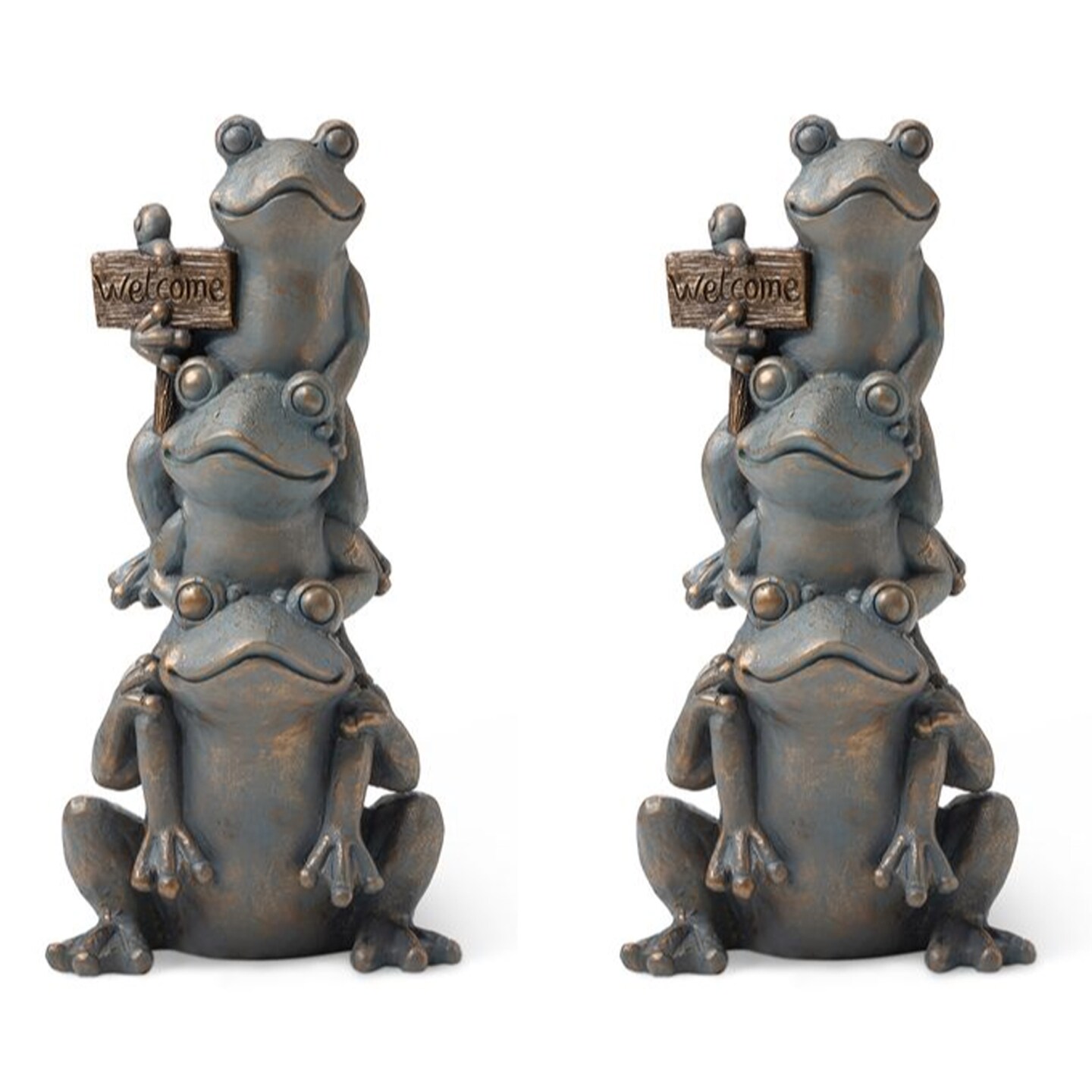 Set of 2 28.25"H Bronze MGO Stacked Frog Statue