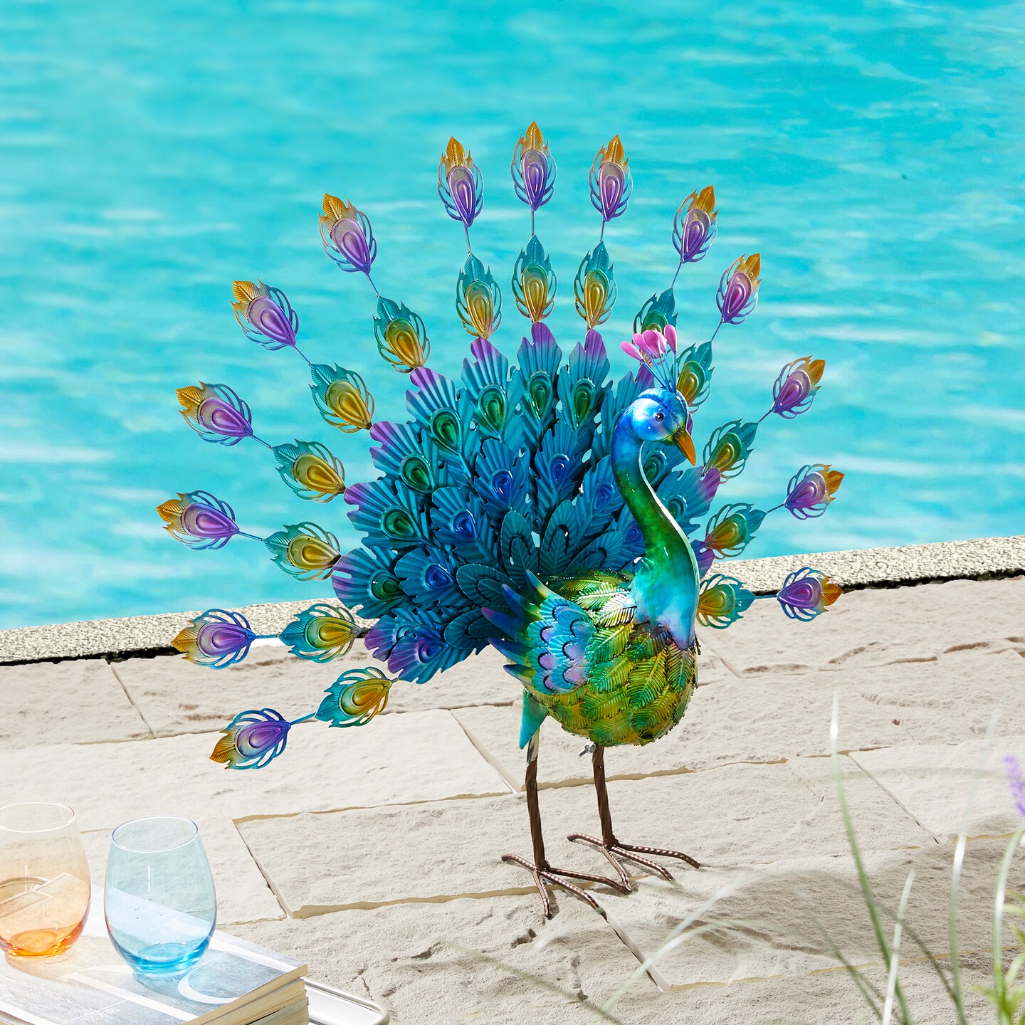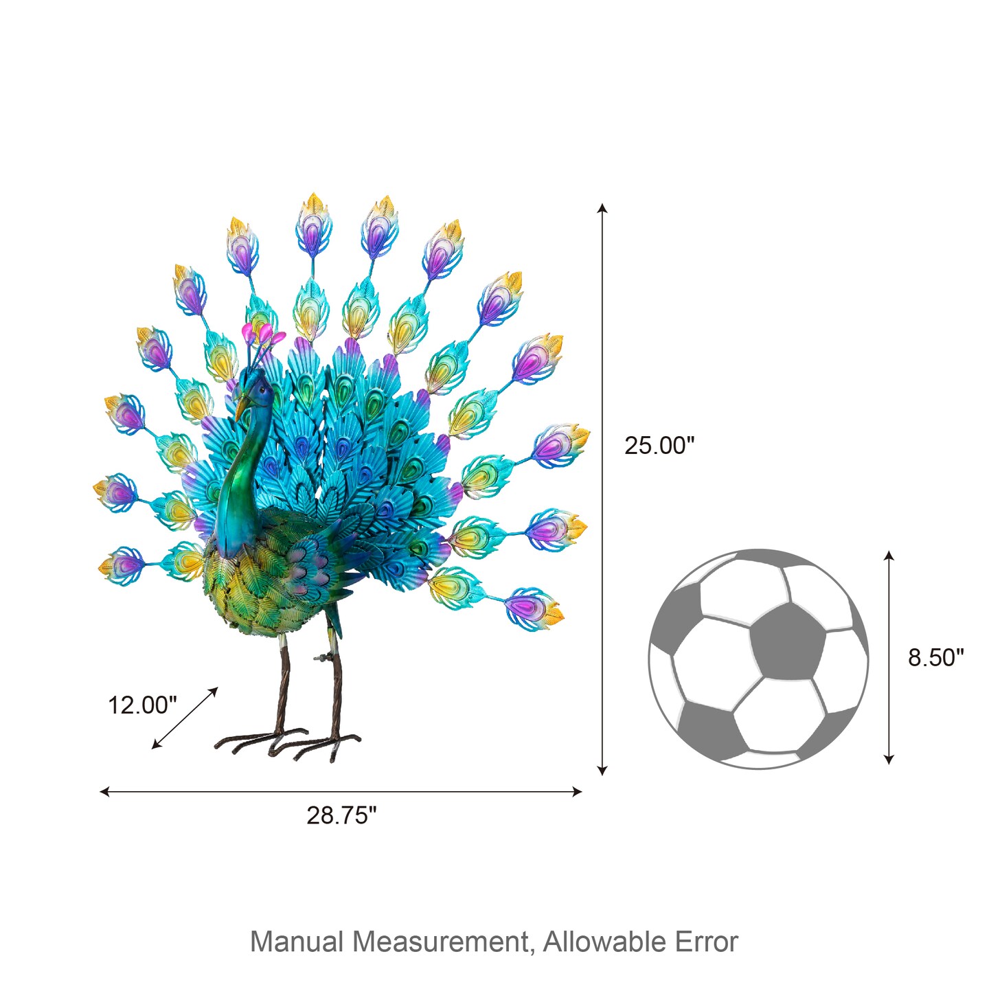 Set of 2 28.75"W Metal Peacock Tail Spread Garden Statue with Stakes (KD)Metal Thickness: 0.3mm